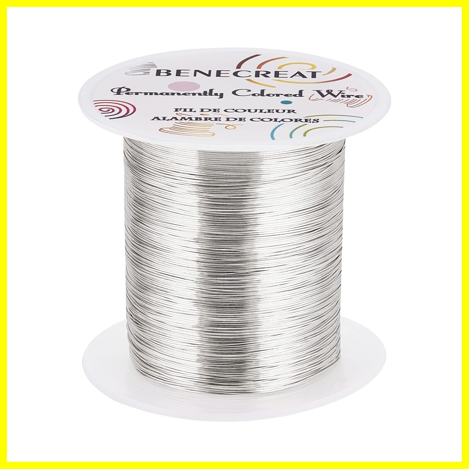 BENECREAT 120m 巻アクセサリーワイヤー 銅製ワイヤー 線径0.4mm 26ゲージ クラフト銅線 アートワイヤー 変色防止 アクセサリーパーツ DIY 手作り 光沢感 アクセサリー用ワイヤー ビーズクラフト ジュエリー作り(シルバー)