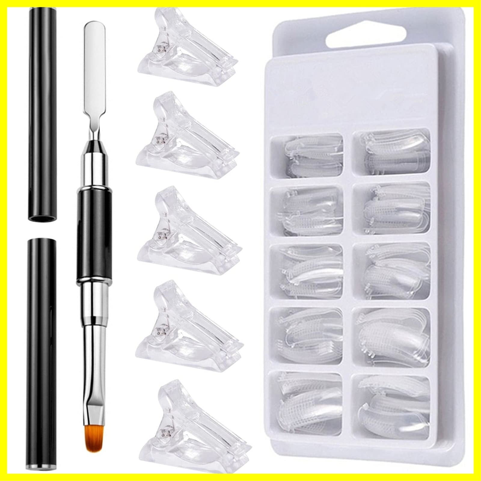 完璧なネイルツールセット ネイルアート 透明フェイクネイルモールド*100枚&透明 ネイルチップクリップ*5個&ポリジェル 筆*1個 て 初心者に適しています