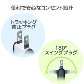 ■狭い場所でも配線しやすい180°スイングプラグを採用しています。