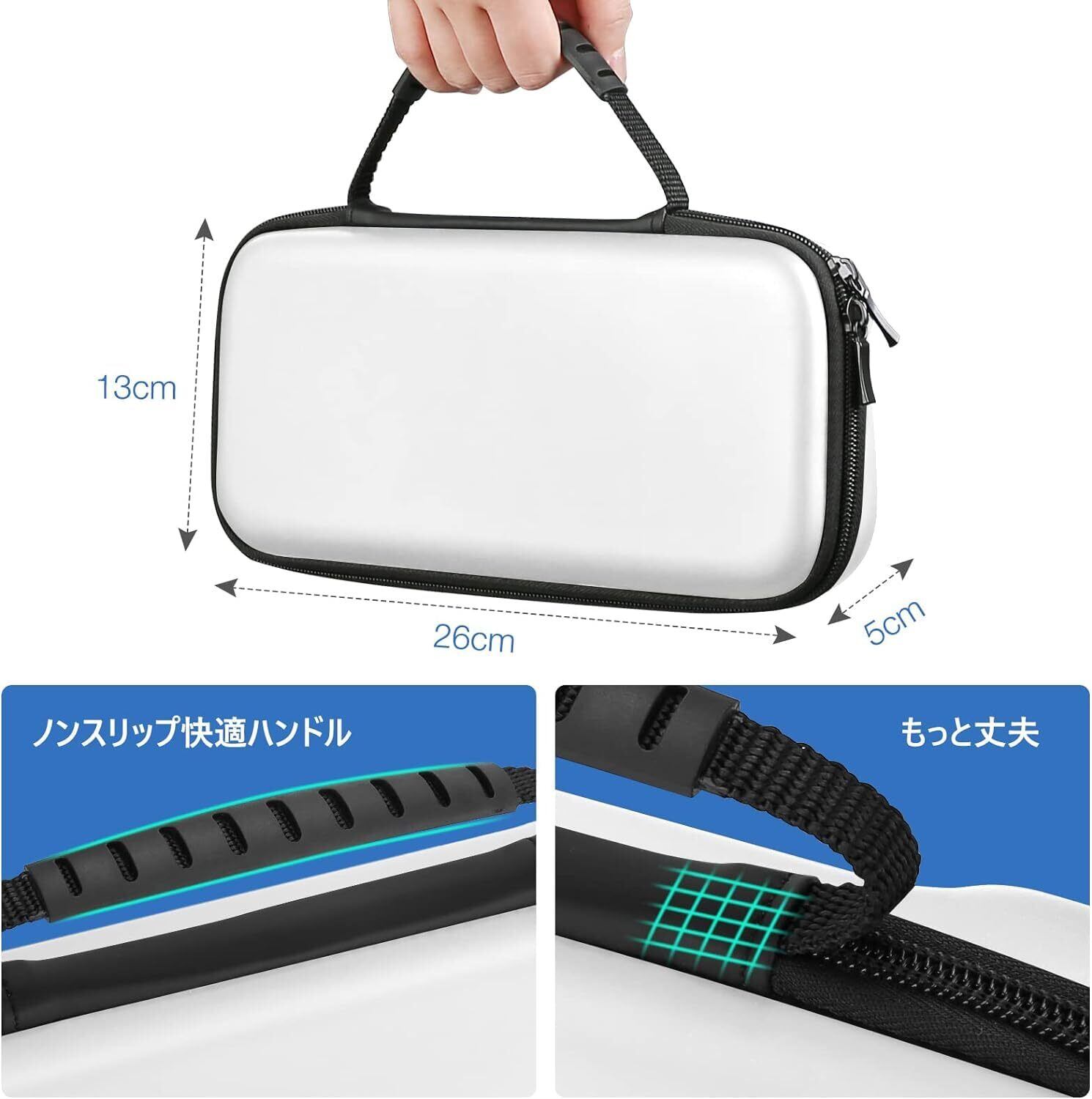 HEYSTOP【Switch ケース /Switch 有機elモデル対応】Switch 有機el ケース 保護カバー ゲームカード収納 防塵 防汚 防水 耐衝撃 全面保護型 持ち運び便利 大容量 収納バッグ バレンタインデー プレゼント ホワイト