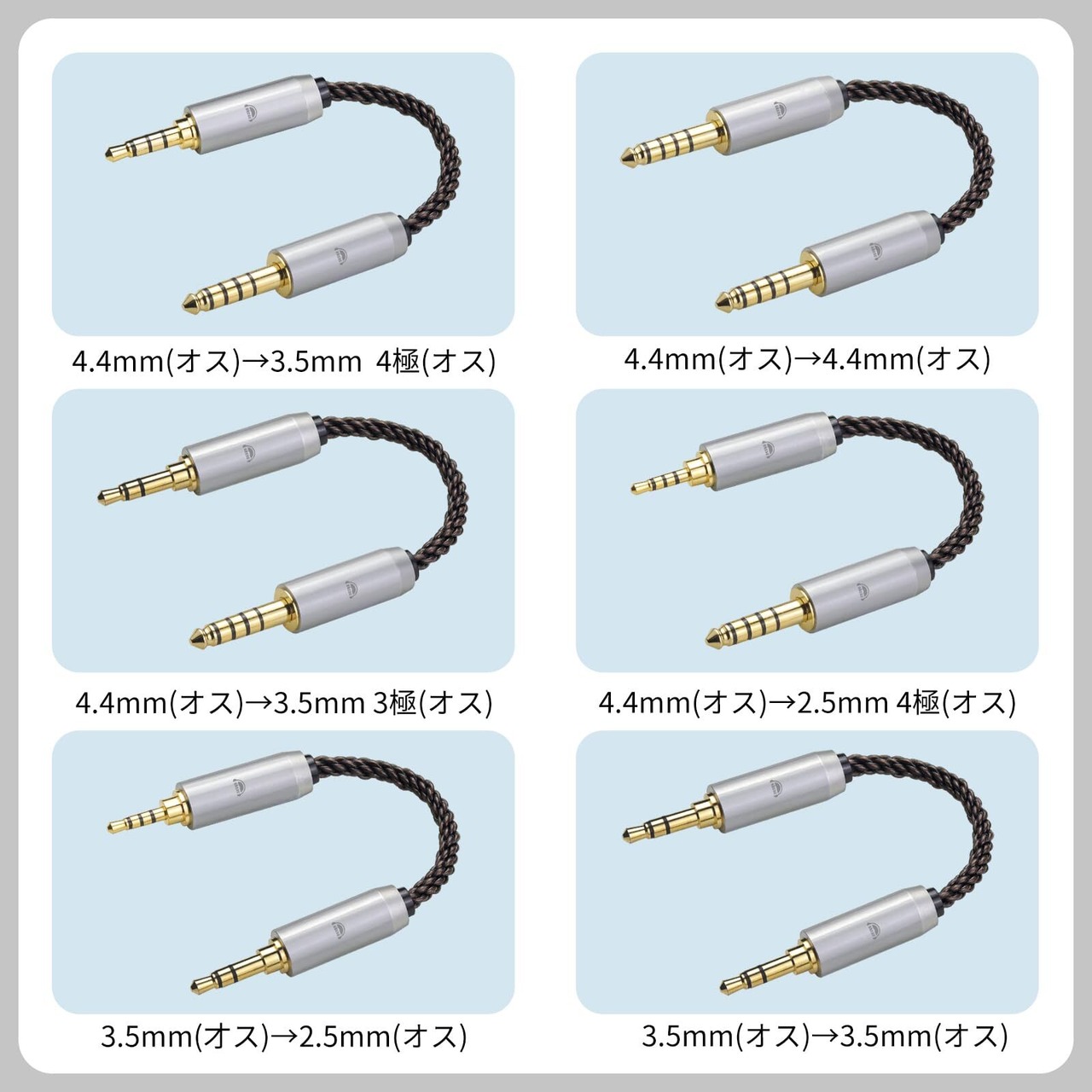 okcsc AU8 オーディオケーブル ステレオミニプラグ AUXケーブル 両側オスオス 3.5mm(オス)→3.5mm(オス) 8芯 OFC 金メッキ スマートフォン、アンプ、オーディオプレーヤー等に適用 約15cm