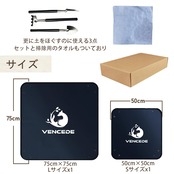 【製品仕様】カラー:ブラック、サイズ:50cm×50cm(Sサイズ)×1、75cm×75cm(Lサイズ)×1、素材:600D高密度オックスフォード生地+VRC素材