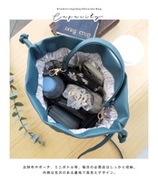 ころんとしたフォルムの2way巾着バッグ。 柔らかく上品なフェイクレザー素材で、 季節を選ばずオールシーズンお使いいただけます。