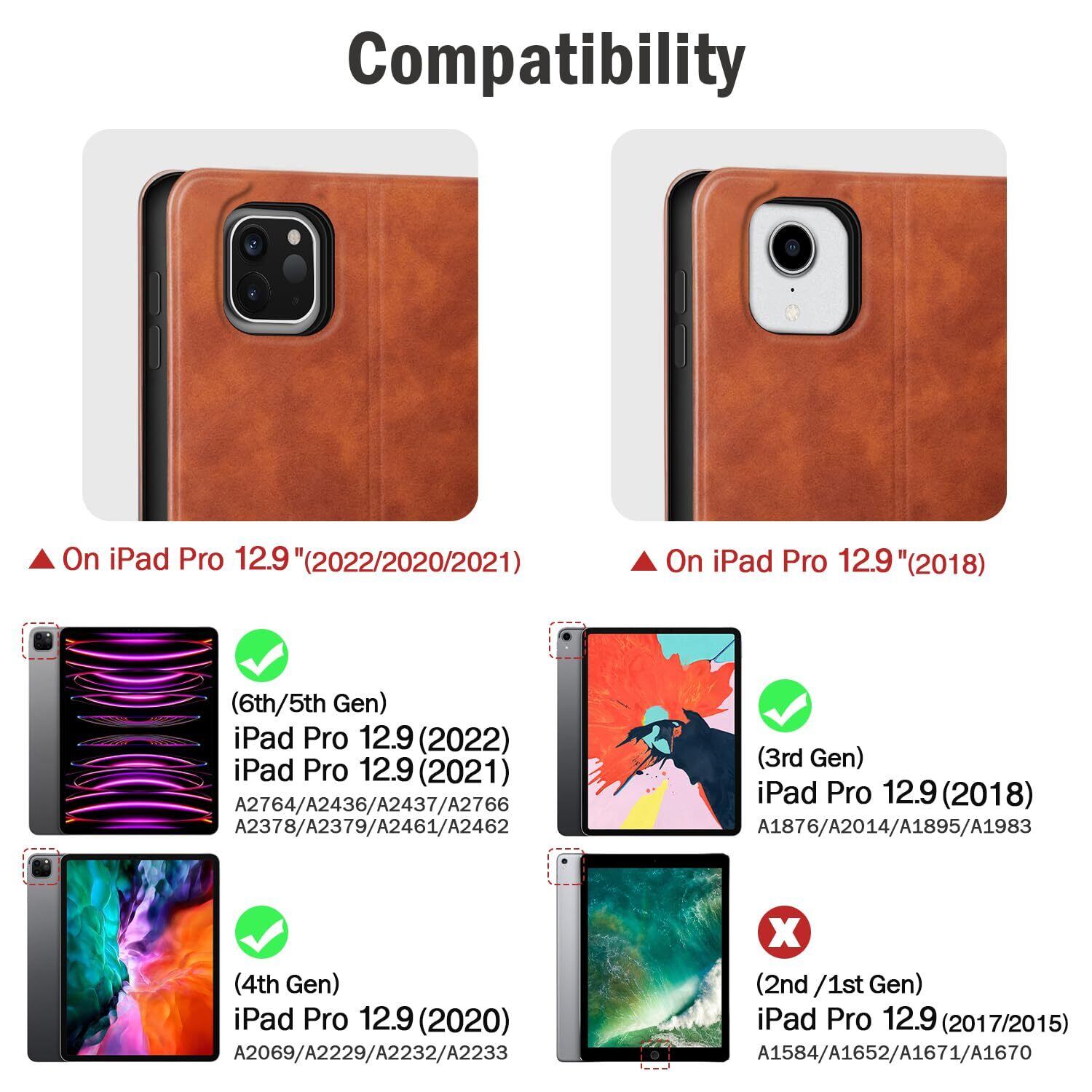 Antbox iPad Pro 12.9 第6世代 ケース 2022 iPad 12.9 第5/4/3世代(2021/2020/2018) 兼用ケース Pencil 2 収納/ペアリングとワイヤレス充電対応 ひび割れ防止 高級ソフトPUレザー iPad Pro 12.9インチ カバー オートスリープ&スタンド機能付き (ブラウン)