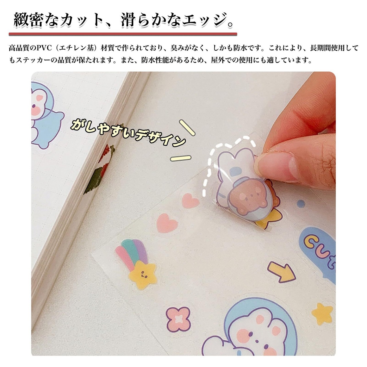MAEXUS 手帳シール 半透明 100枚入り スペースシリーズ 日記シール 可愛い 手帳 ステッカー コラージュ素材 シール 手帳用シール DIY 手作り 大量装飾用 宇宙飛行士のウサギとさなクマ
