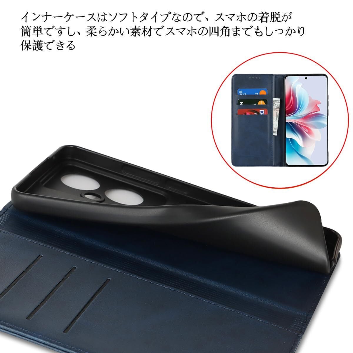 OPPO Reno11 A ケース 手帳型 Reno11A オッポ リノ 11A ワイモバイル A401OP 楽天モバイル SIMフリー SoftBank 対応 OPPOReno11A カバー オッポRENO11A スマホケース リノ11A 手帳ケース オッポ RENO 11A 適用 iCoverCase マグネット カードケース 携帯カバー カード スタンド 落ち着いた色 レトロ ネイビー