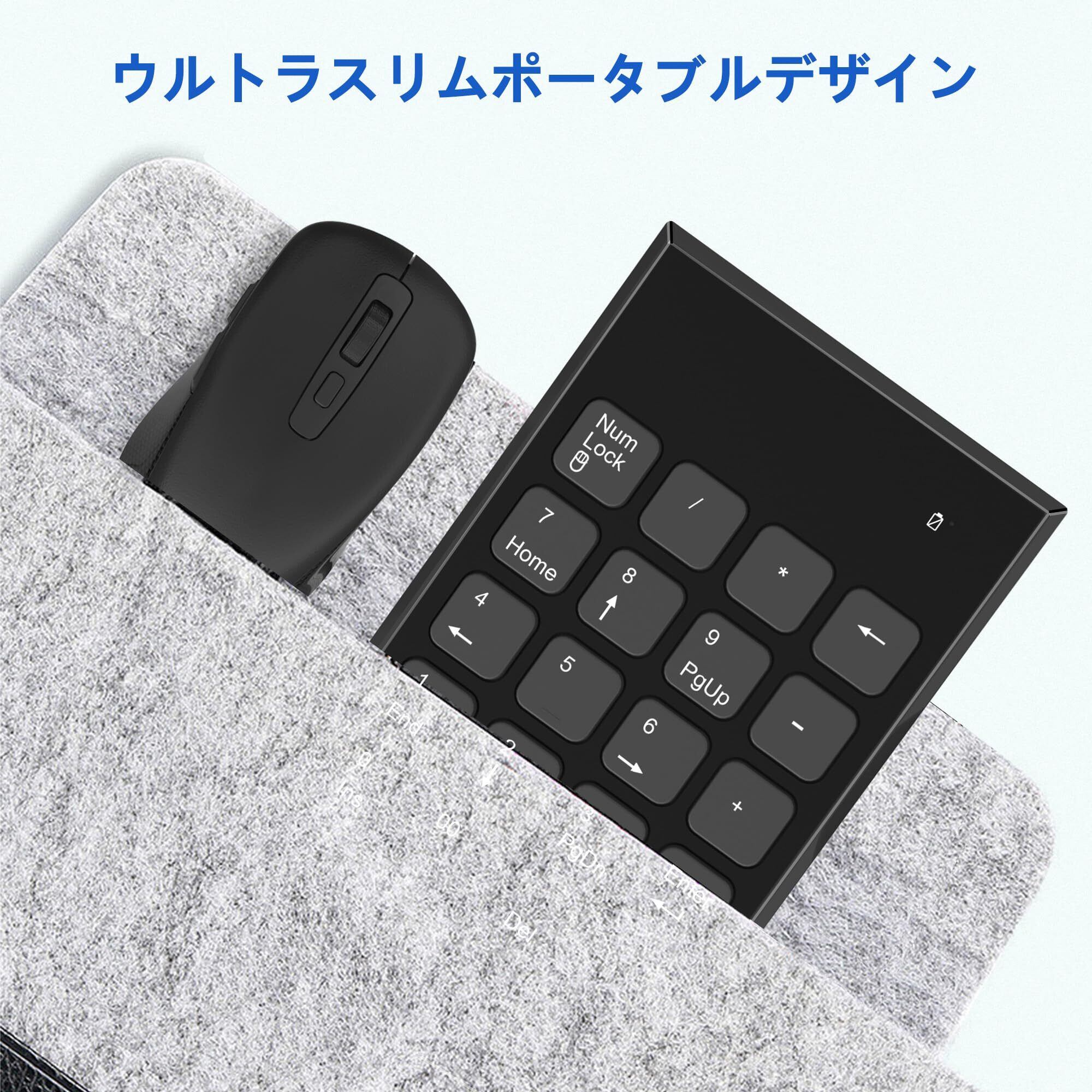 2.4GHzワイヤレス:最新の2.4 GHzワイヤレス技術、プラグアンドプレイ、デバイスドライバーなし、信号伝送の安定性、ほとんど遅延なし、最大32.8FTの動作範囲を使用。超薄型およびワイヤレス機能により、ノートパソコン用のテンキーを使ってどこにでも移動できます。