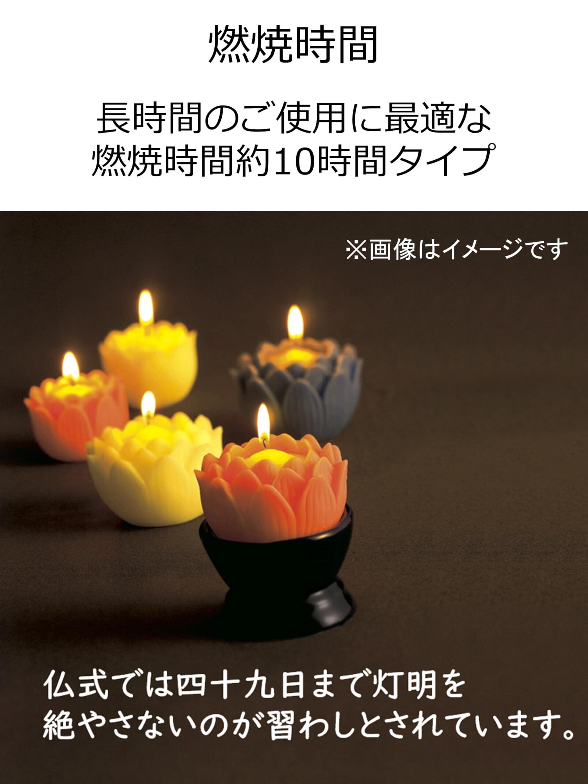 『蓮の花』は長時間のご使用に最適な燃焼時間約10時間タイプの蓮型ろうそくです。