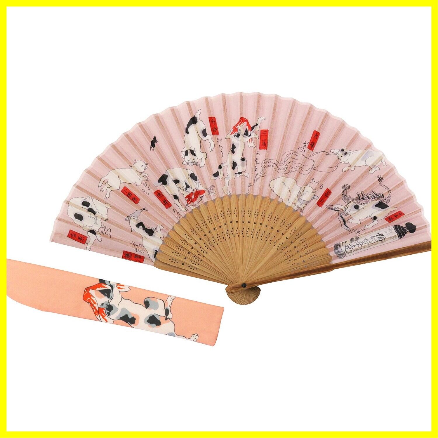 京佑(Kyoyu) 扇子 ケース 袋 入れ セット 和装 和風 和柄 浴衣 シルク 浮世絵 国芳 猫飼好五十三疋 猫 ピンク
