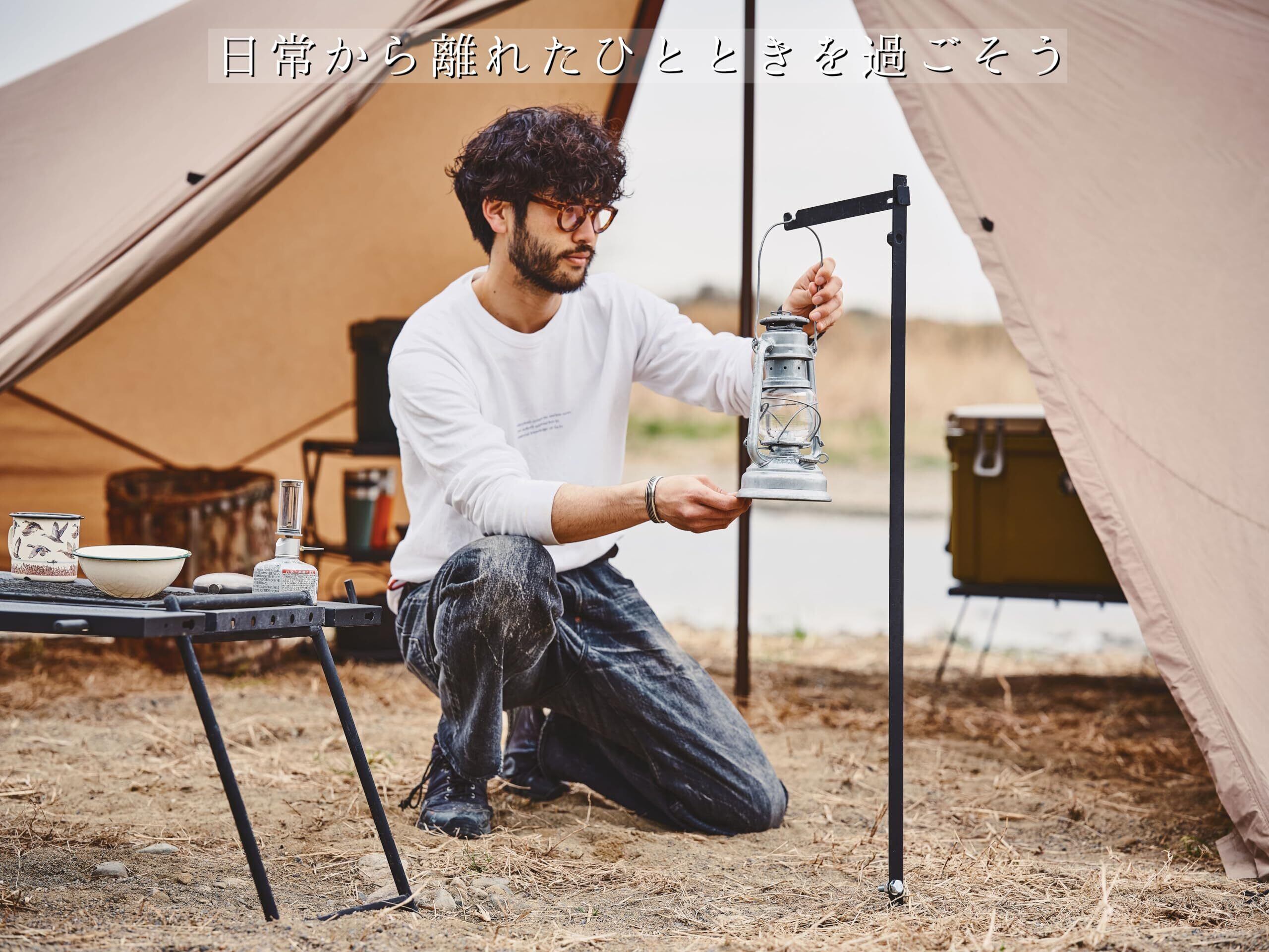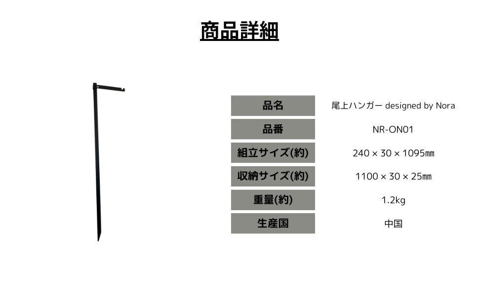 尾上製作所(ONOE) 尾上ハンガー designed by Nora(ランタンハンガー) NR-ON01ロータイプのランタンハンガー 別売のマルチハンガーと連結させて高くすることが可能 ブラック 中 組立240×30×1095mm 収納1100×30×25mm ランタンスタンド ledランタン