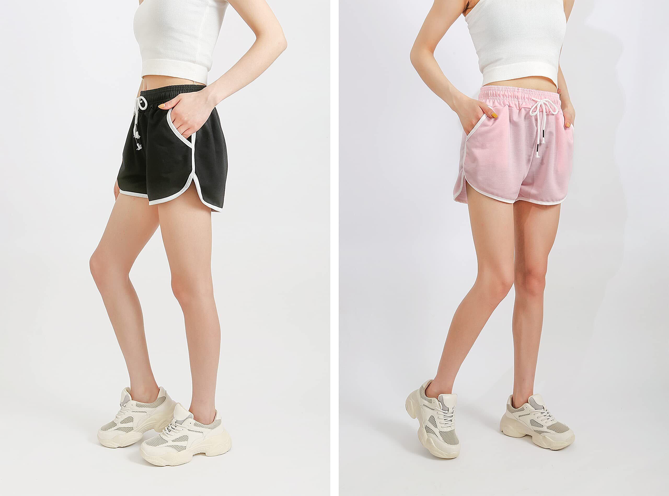 RAKUKOU レディース ショートパンツ 綿混 スポーツ 短パン 夏 ポケット付き カジュアルウエア 柔らかい 通気性 伸縮性 吸汗 速乾 ヨガ ランニング