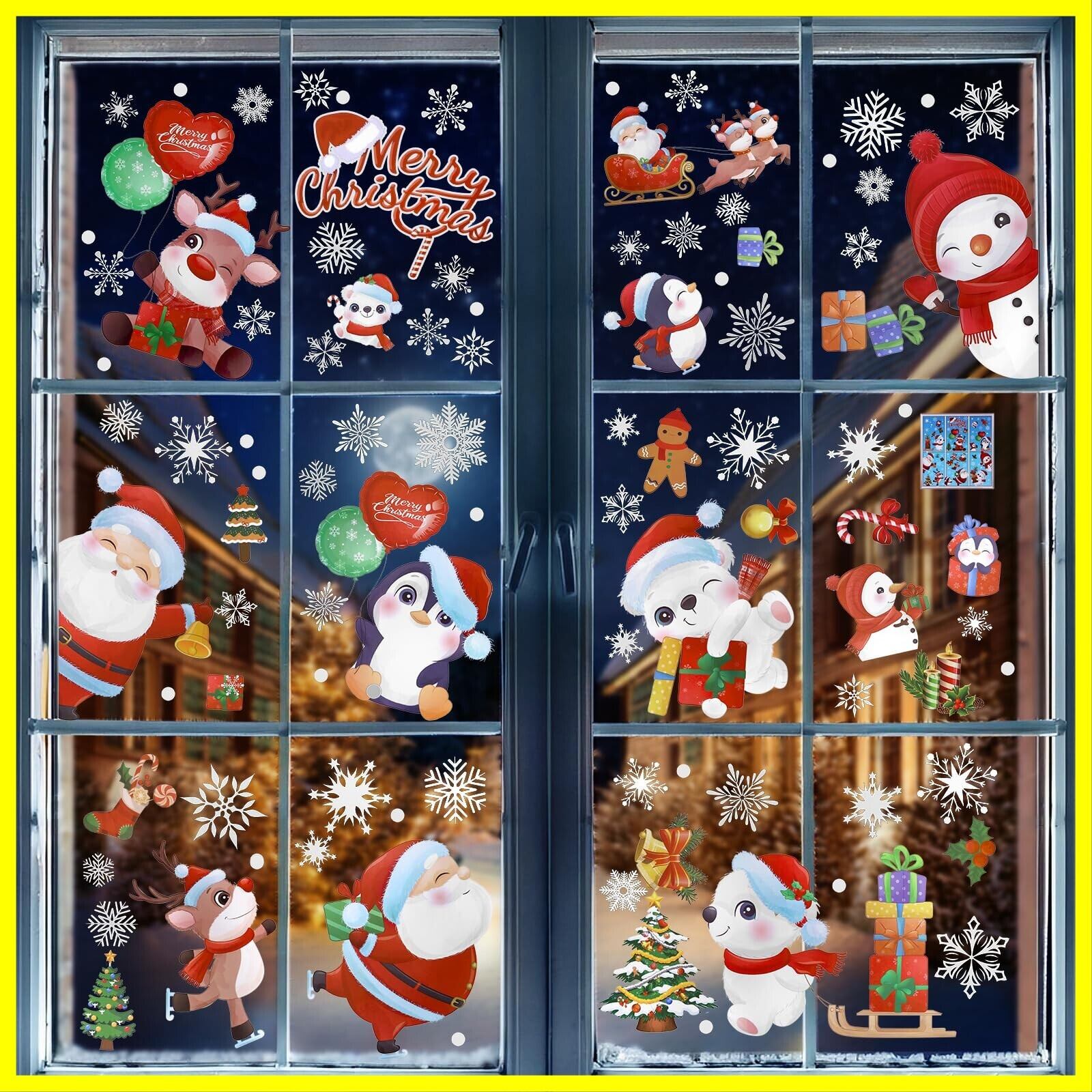 【大容量168点入り】雪の結晶・サンタ・トナカイなどクリスマスっぽいデザインたっぷり入ってる静電気ステッカー、このセットだけで窓を可愛くなります!カンタンに店舗やお部屋が一気にクリスマスに変身