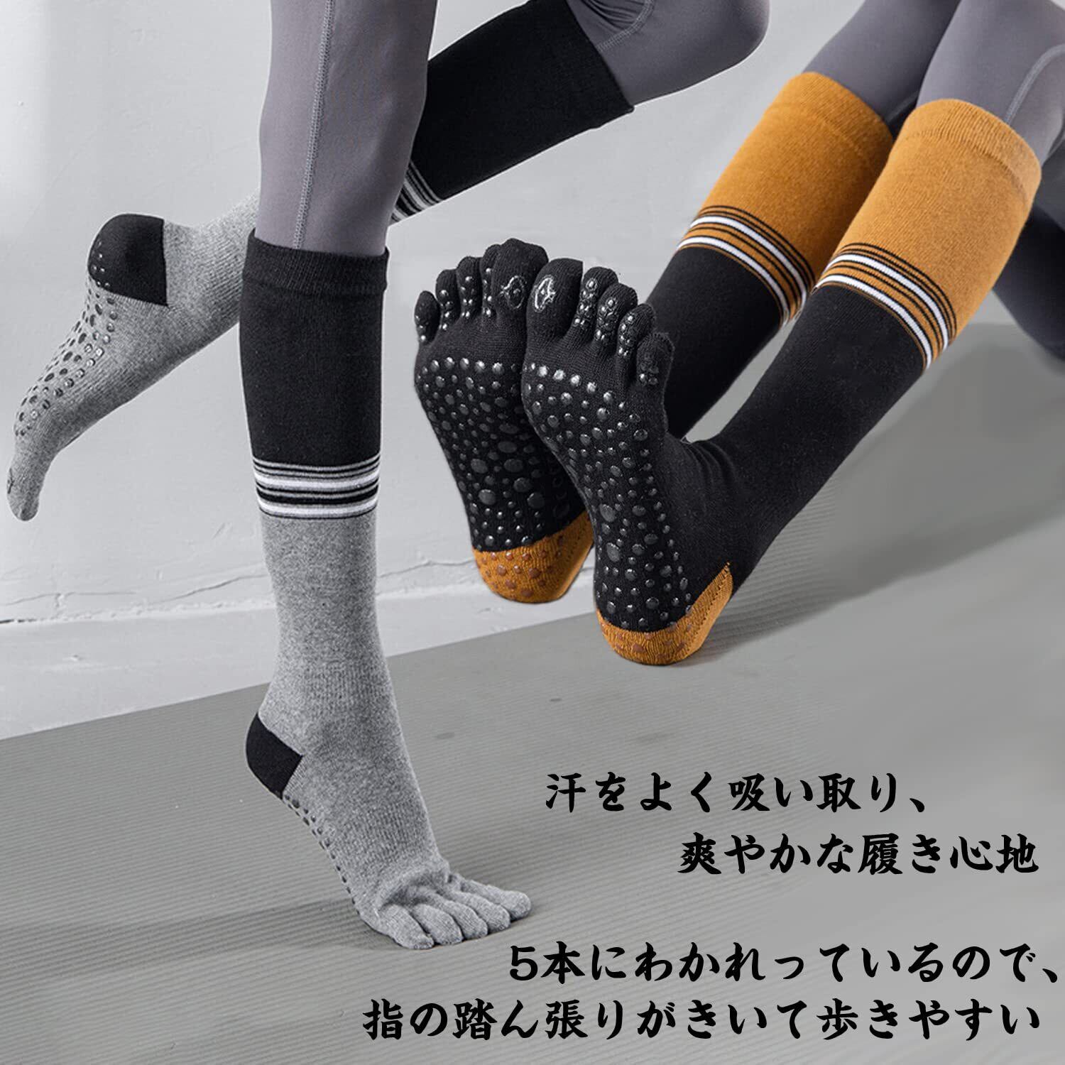 [Ech.Apr] ヨガソックス 5本指 ハイソックス 3足セット アソート レディース 滑らない 滑り止め 靴下 ロング ランニング 女性用 通気性 スポーツ ポラティ バレー ダンス