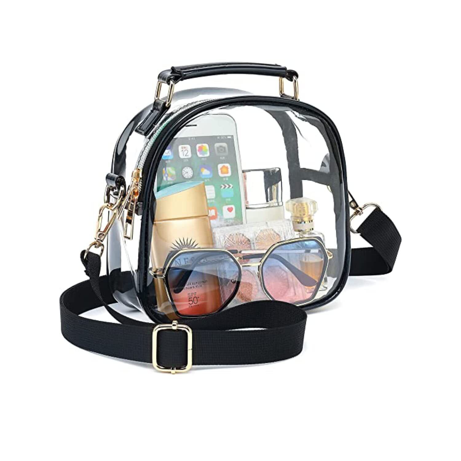 容量: ファッション クリア メッセンジャー バッグは、すべての重要なものを収納するのに十分なスペースを提供します。 携帯電話、財布、化粧品、鍵、サングラス、クリアバッグが必要なコンサートやゲームに最適です。
