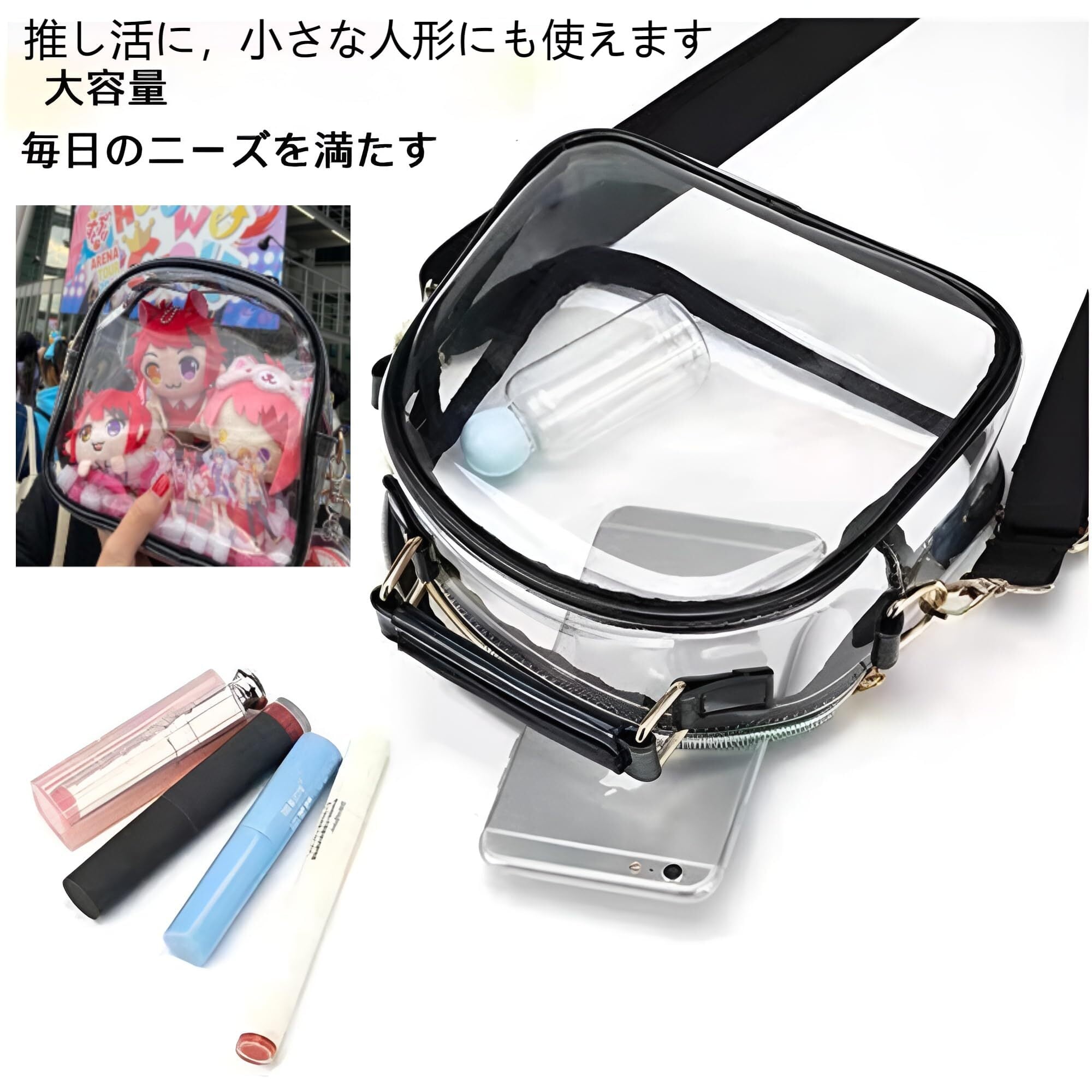 [PandaSays] クリアバッグ 透明バッグ 痛バッグ ビニールバッグ クリアバッグ ショルダー ショッピングバッグ 化粧ポーチ ぬいぐるみ ポーチ 推し活バッグ