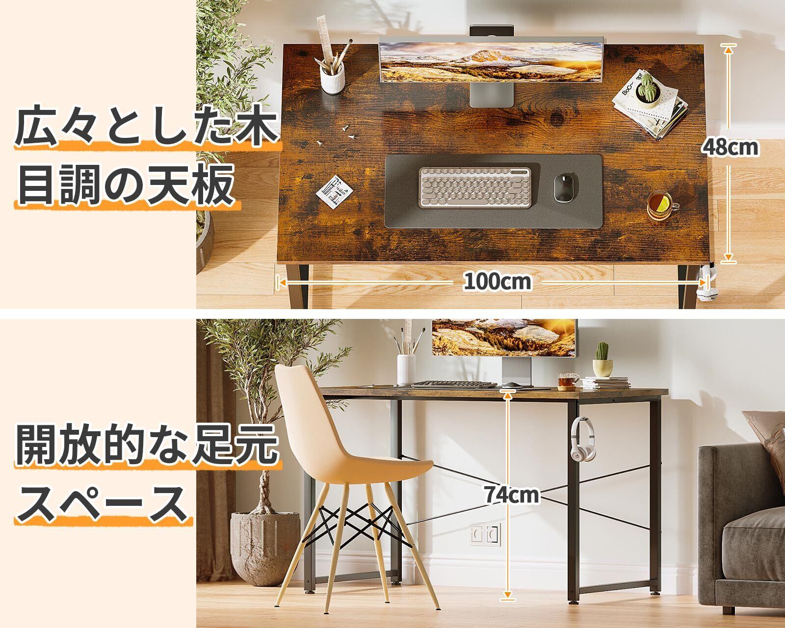 【商品仕様】シンプルでインテリアに馴染むおしゃれなデスクです。◆本体サイズ:幅100×奥行48×高さ74CM | 本体重量:7KG | 日本語組立説明書あり | お客様組立て品で、レンチも付属しており、別途で工具を買う必要がないです。