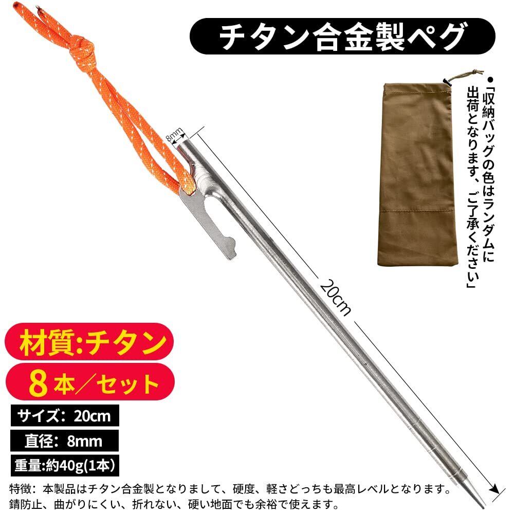 Soomloom ペグ チタン製 固定ロープ付き テント用 タープ用20㎝ 3本/4本/8本/16本セット