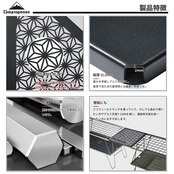 特徴:重さを考慮しアルミを使用し、板厚で見た目の重厚感とは裏腹に軽量です。放電加工にて伝統的な文様の麻の葉紋に仕上げ。