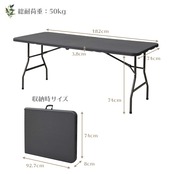 このテーブルは折りたたみ可能です。正しい組み立てと使用方法に従ってください。重さ50kgまでの荷重に耐えます。正しく設置し、固定してください。転倒や倒壊を防ぐために、重い荷物を載せないでください。