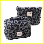 化粧ポーチ 2点セット 豹柄 ふわふわ 可愛い おしゃれ 大容量 コスメポーチ メイクポーチ バニティ 大きめ 小さめ セット 持ち運び 軽量 旅行 出張 (グレー)
