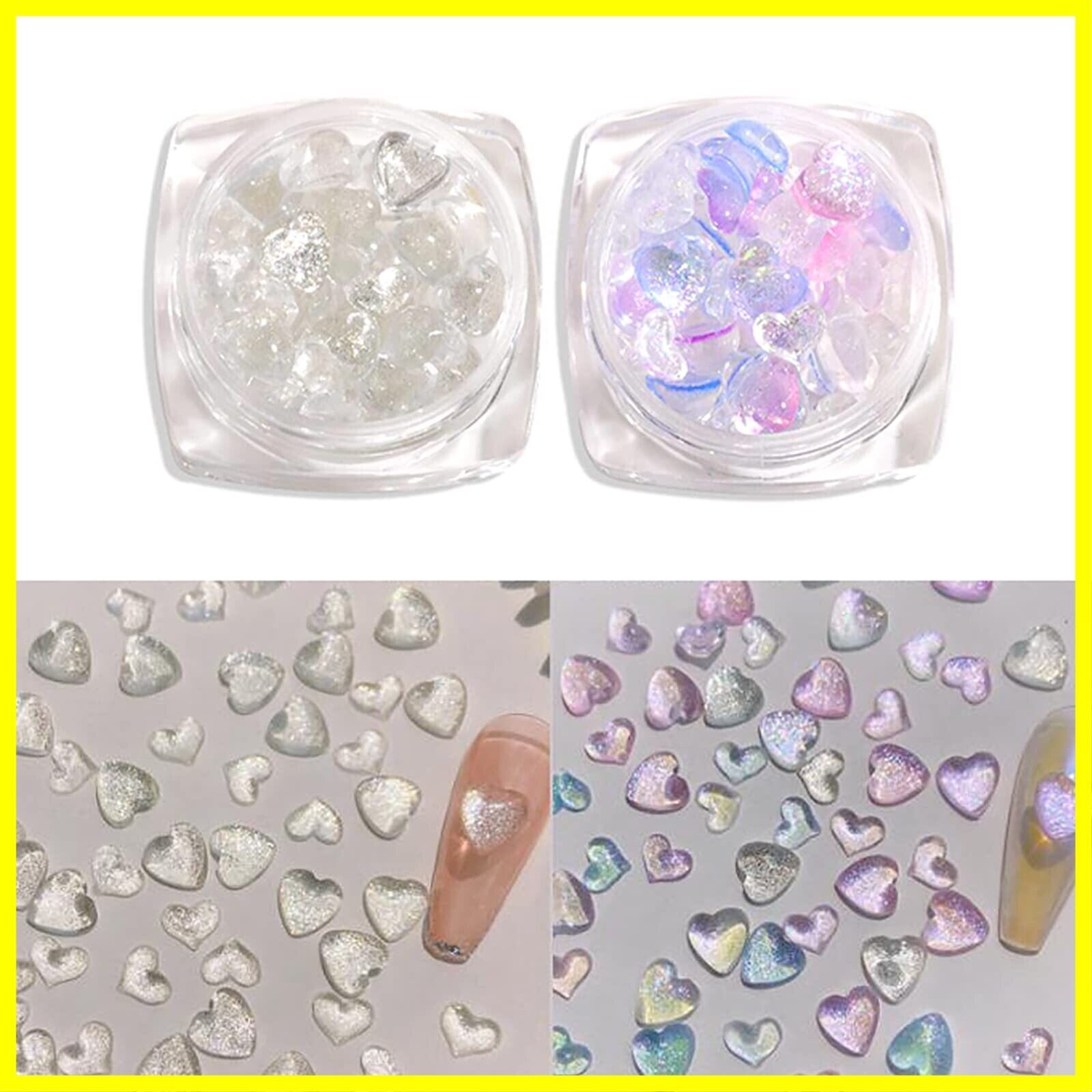 ネイルパーツ ネイルツール オーロラ 3d 立体 多色 ネイルストーン ハート型 レジン ネイル デコパーツ 5mm 6mm 約100個 (A)