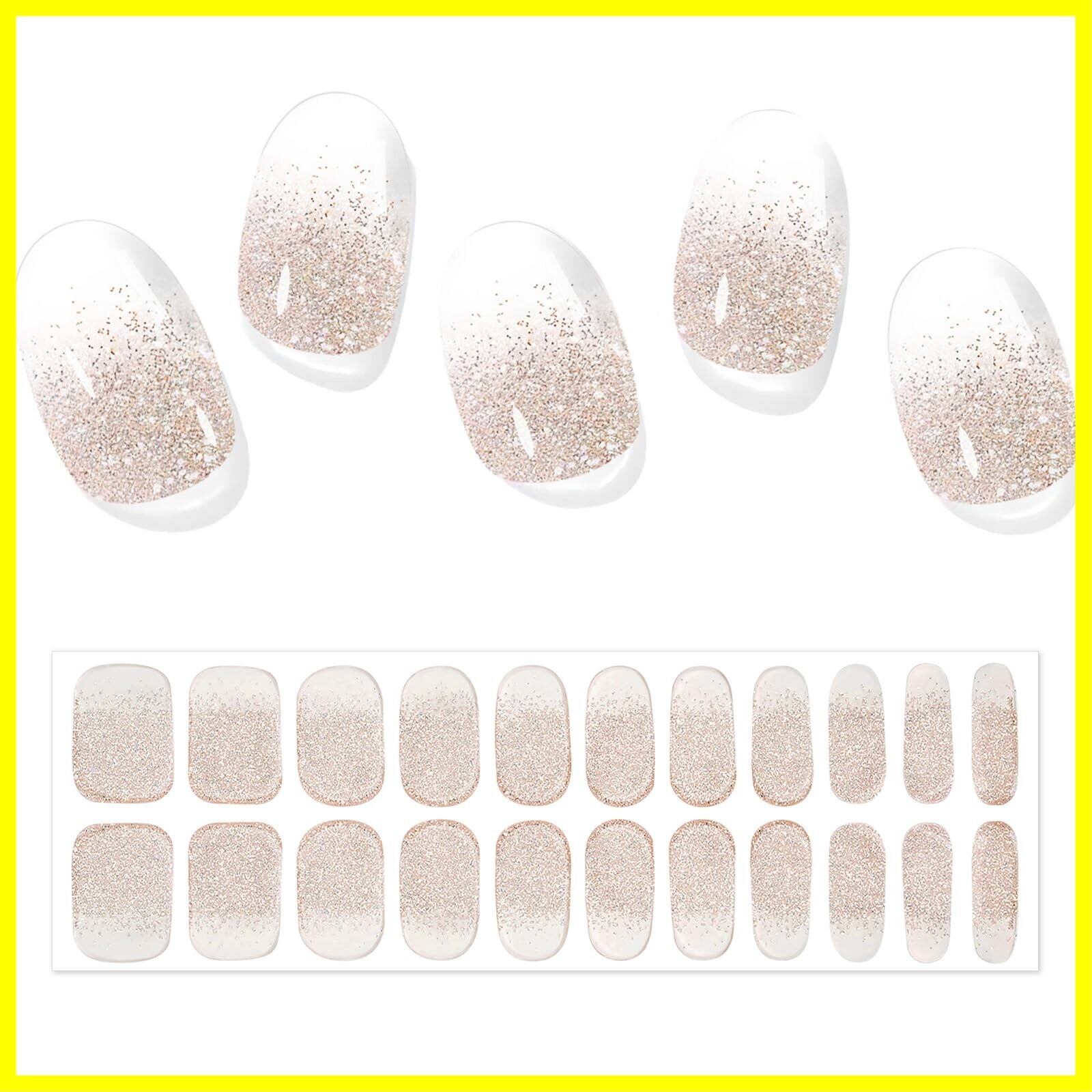 【使いやすい】プロの美甲技術を必要とせず、初心者でもお使いいただけます。自分のサイズに合ったシールを選び、ネイルにつけてからUVライト(別売り)で60s硬化するだけで完成します