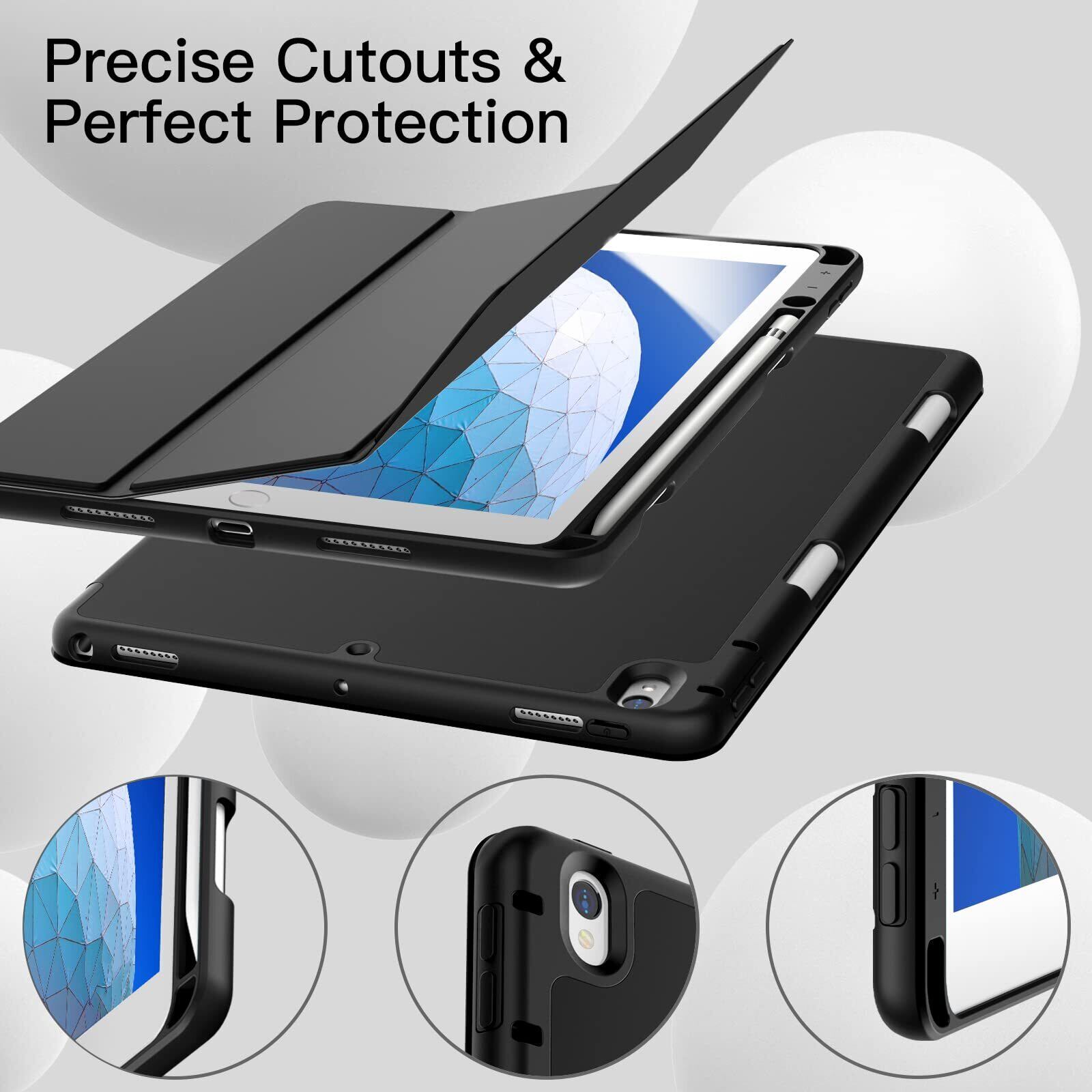 JETech iPad Air 3 (10.5インチ 2019, 第3世代)とiPad Pro 10.5 用Pencilホルダー付き ペンシル ソフトTPUバック スリム保護カバー オートウェイクアップ/スリープ機能付き (ブラック)