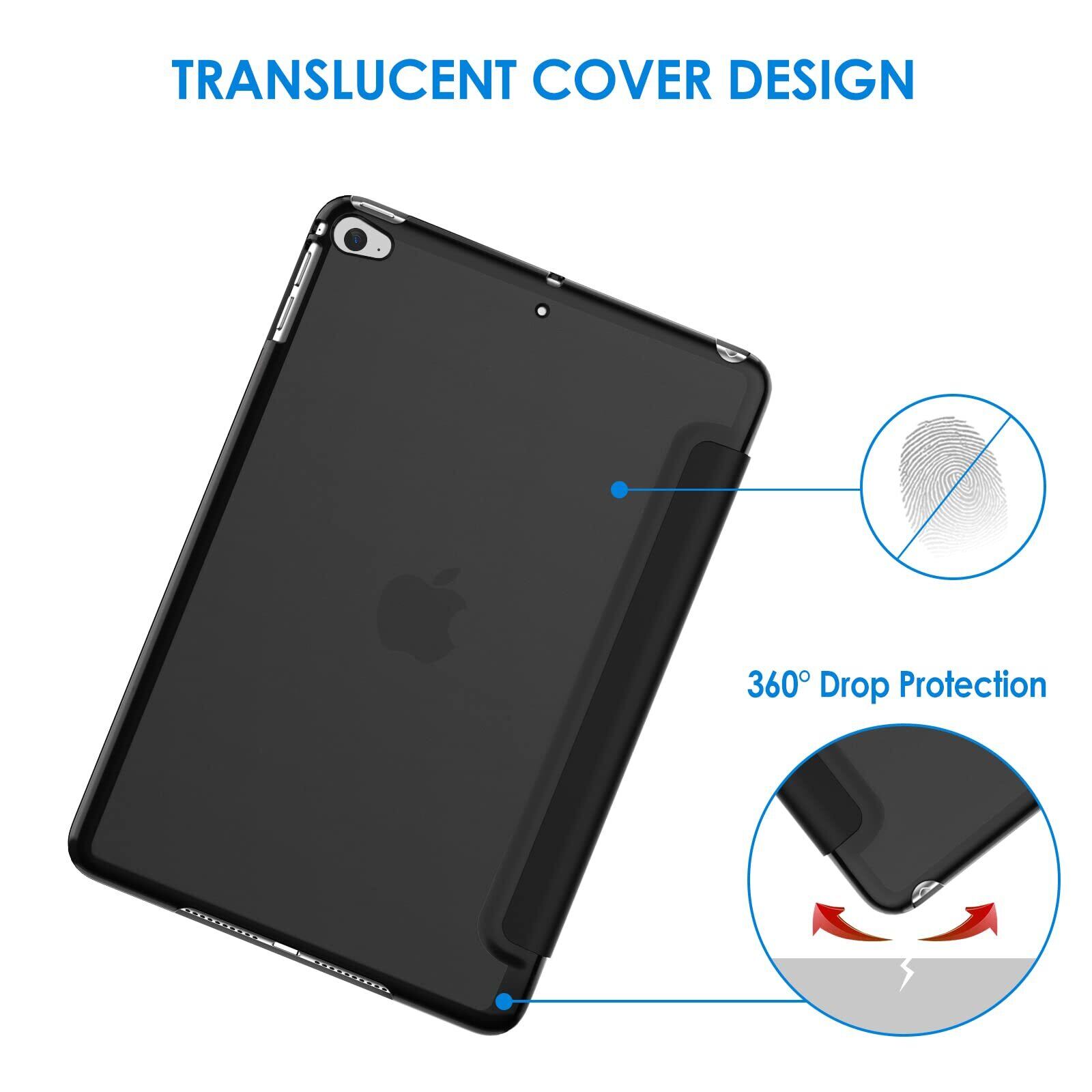 JEDirect iPad mini 4 ケース (iPad mini 5 2019モデル非対応) 三つ折スタンド オートスリープ機能 (ブラック)