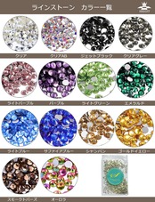 【内容量】:ラインストーン/1カラー・1サイズ(計1300粒以上)【カラー】 クリア / クリアAB / ジェットブラック / クリアグレー / ライトパープル / パープル / ライトグリーン / エメラルド / ライトブルー / サファイアブルー / シャンパン / ゴールドイエロー / スモークトパーズ / オーロラ