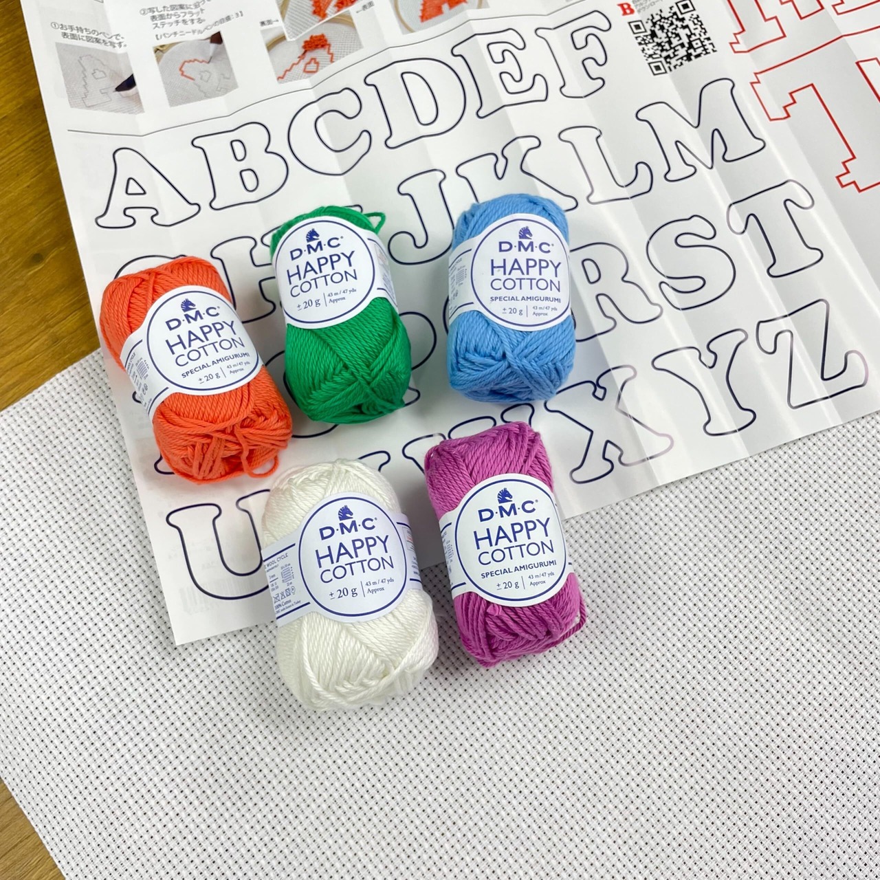 セット内容:ファブリック、コットン糸、アルファベット図案