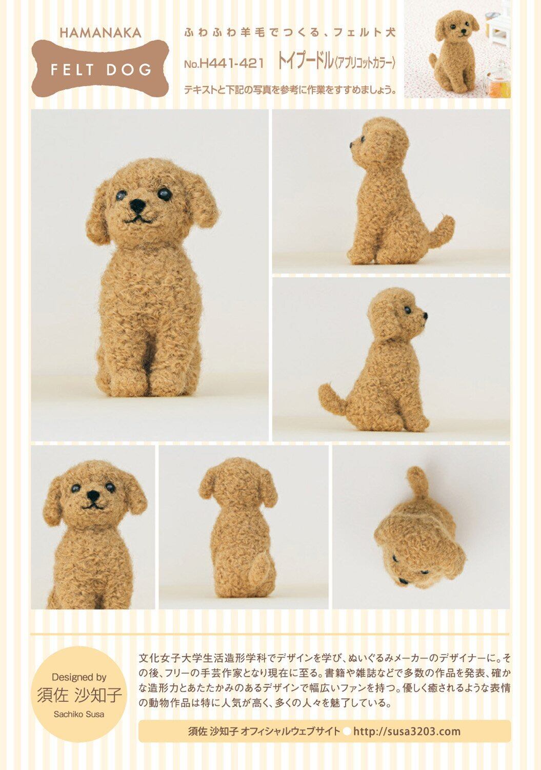 ハマナカ フェルト羊毛キット ふわふわ羊毛でつくる、フェルト犬 トイプードル(アプリコットカラー) H441-421 Designed by 須佐沙知子