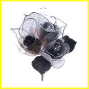 国内で手作りした高級コサージュです。立体的な造形、異素材の組み合わせ、ストーンなど副素材の選択、仕上げの丁寧さなどを総合すると非常にリーズナブルなコサージュであると分って頂けるかと思います。