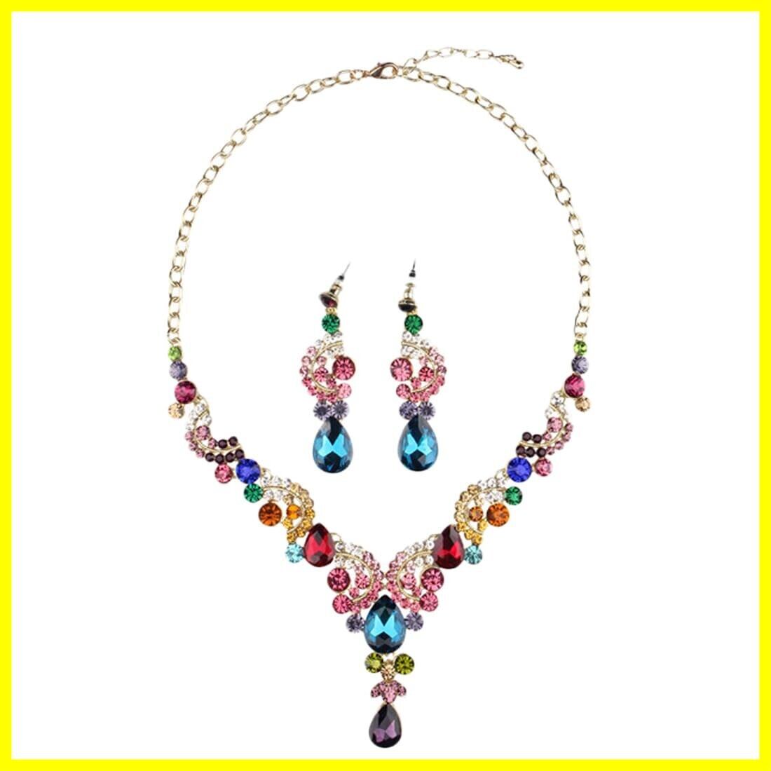 大粒クリスタルガラスとラインストーンをふんだんにあしらったゴージャスなファッションジュエリーです。ネックレスとピアスの2点セットにてお届けいたします。眩いばかりに煌く上品な雰囲気はあらゆるパーティ・フォーマルシーンであなたの装いをより一層演出し輝かせます。