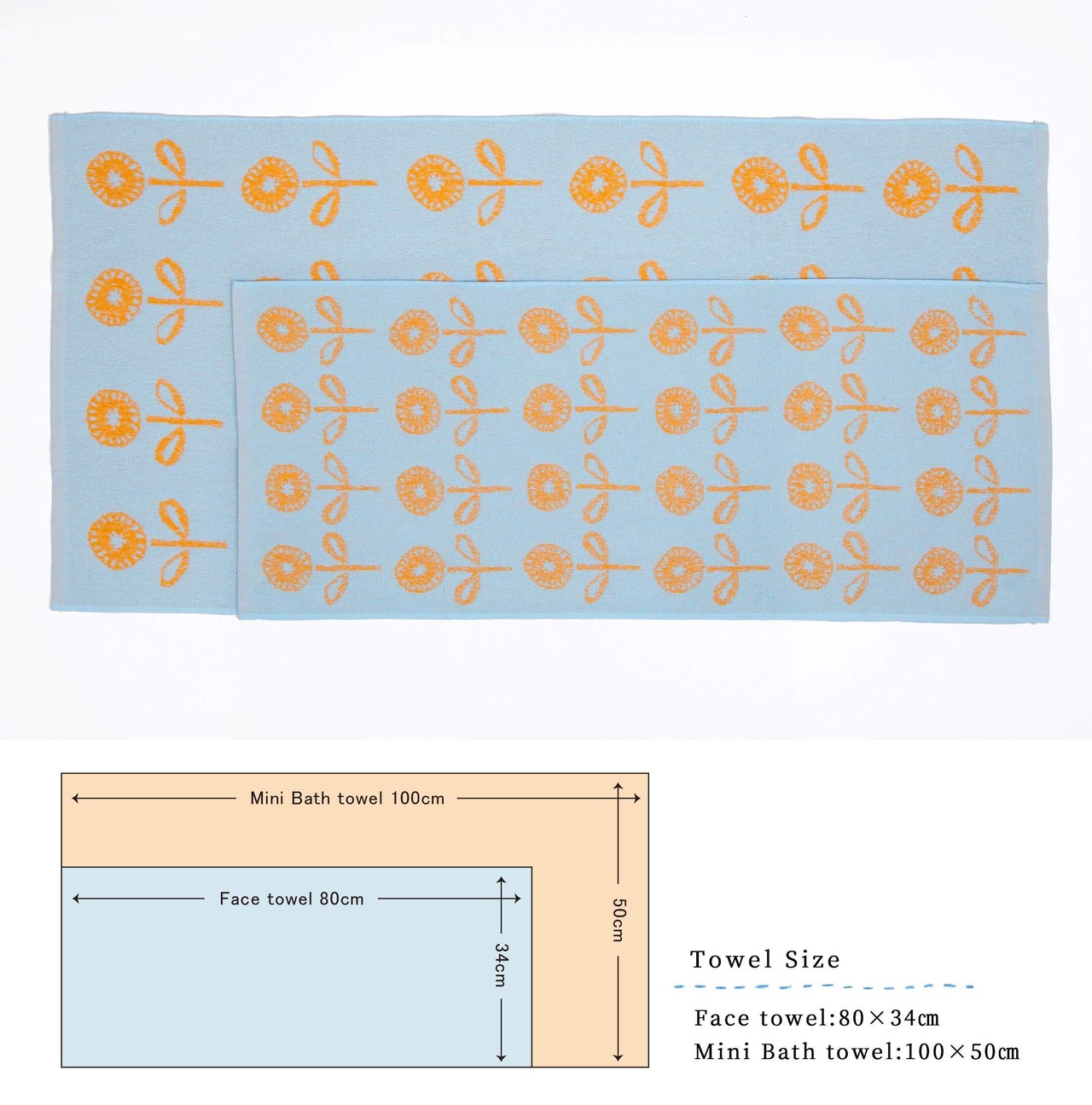 Kosugizen ミニバスタオル 北欧調ジャガード フラワー 2色(2柄)各1枚入 50×100㎝ 小さなサイズのバスタオル デイリーユース 2枚セット SV-461-2