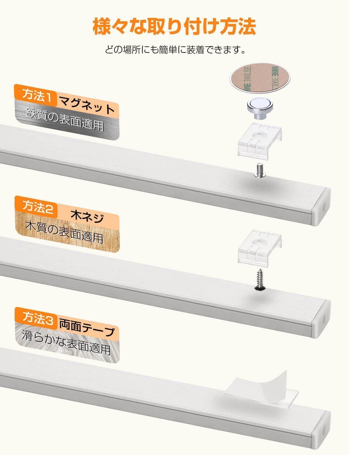 【強力マグネット/両面テープ付き】マグネットに加えて、超強力3M両面テープも追加しています。 滑らかな表面ならどこにでも貼ったり、金属表面ならどこでも簡単に吸着できます。好きな場所にバーライトを工事不要に装着できます。