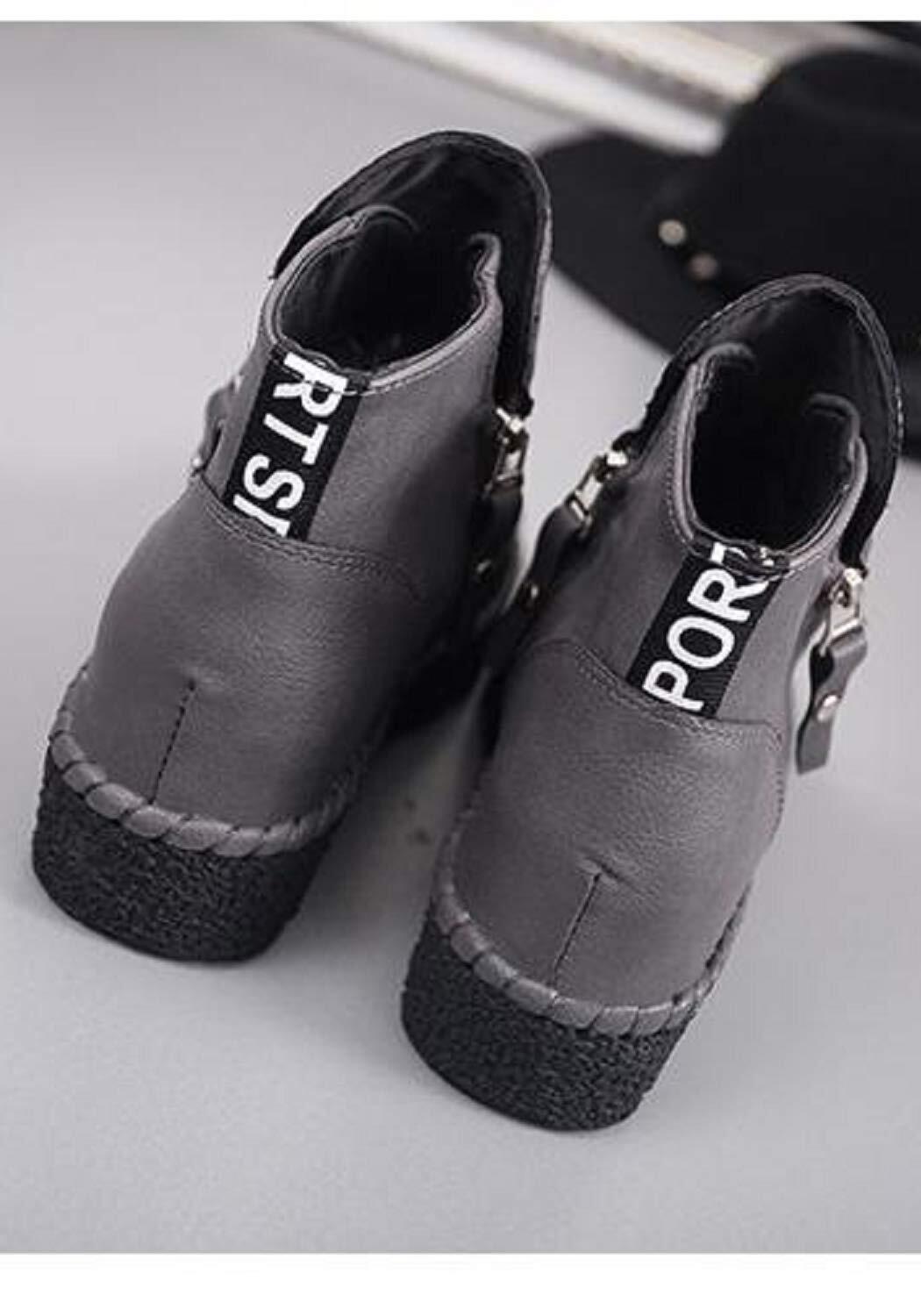 [Kaenarie] ハイカット 厚底 インヒール PU ロゴ スニーカー レディース サイド ジップ 3色 (ブラック ブラウン グレー)