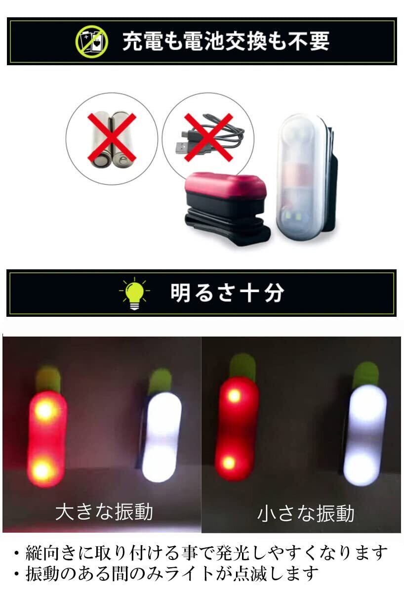 ◆充電や電池交換が一切不要で手間なし、維持コストなし、超エコな安全ライト!電池交換やUSB充電などの面倒が一切ないライトです(動いている間のみ点滅します)。