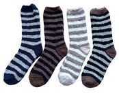 [モードセレクト] ふわふわソックス メンズ 4足組 あったか 厚手 冬 靴下 メンズ 厚手 冬 もこもこ 柔らかいルームソックス ボーダー4足セット(色お任せ) D24