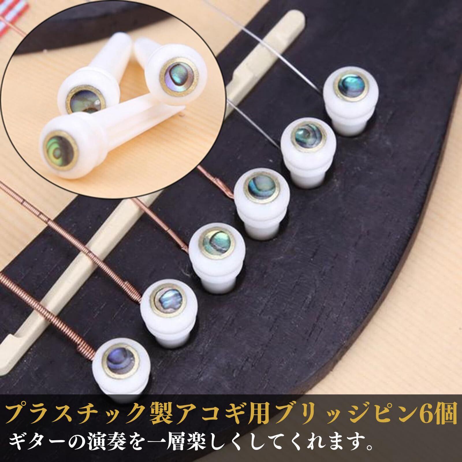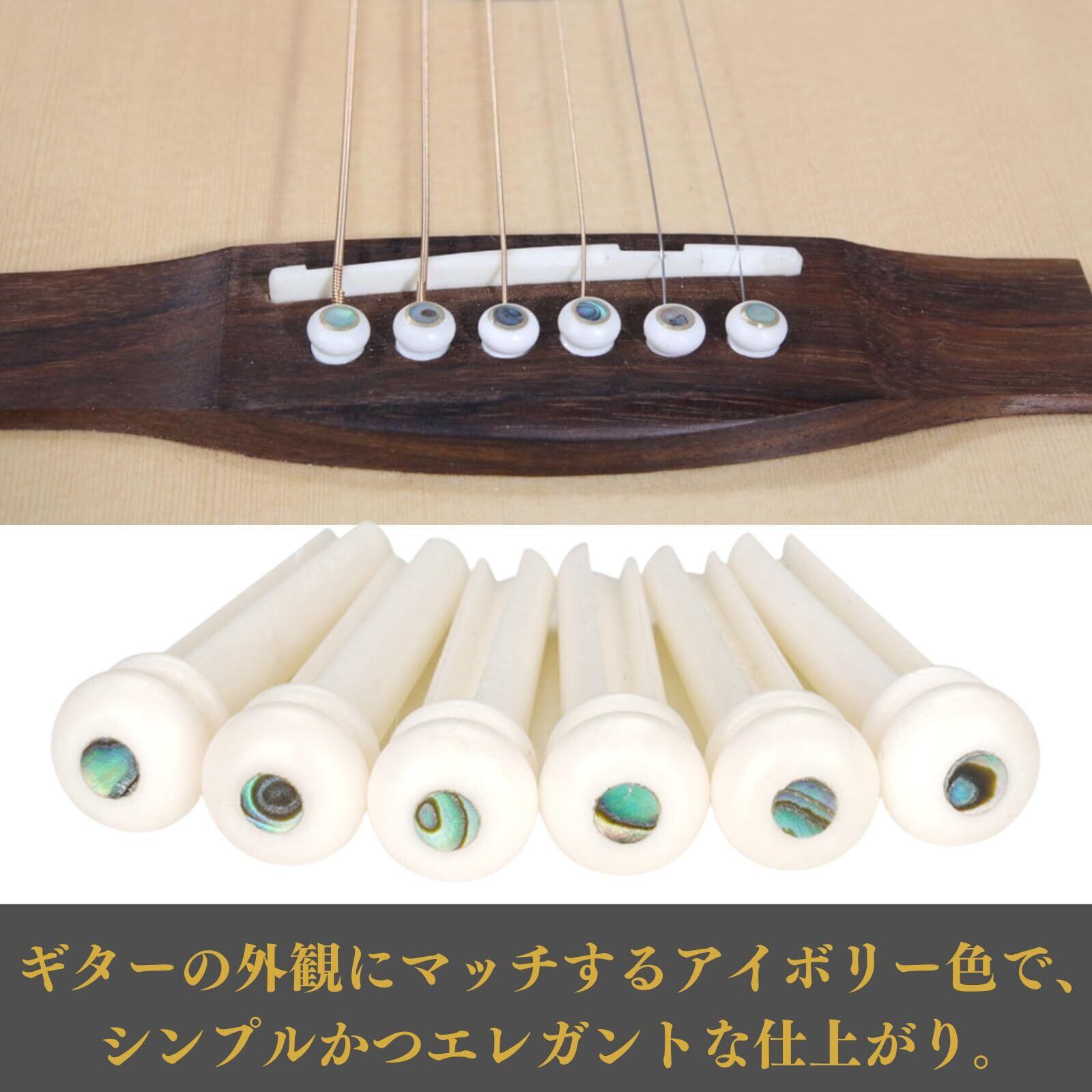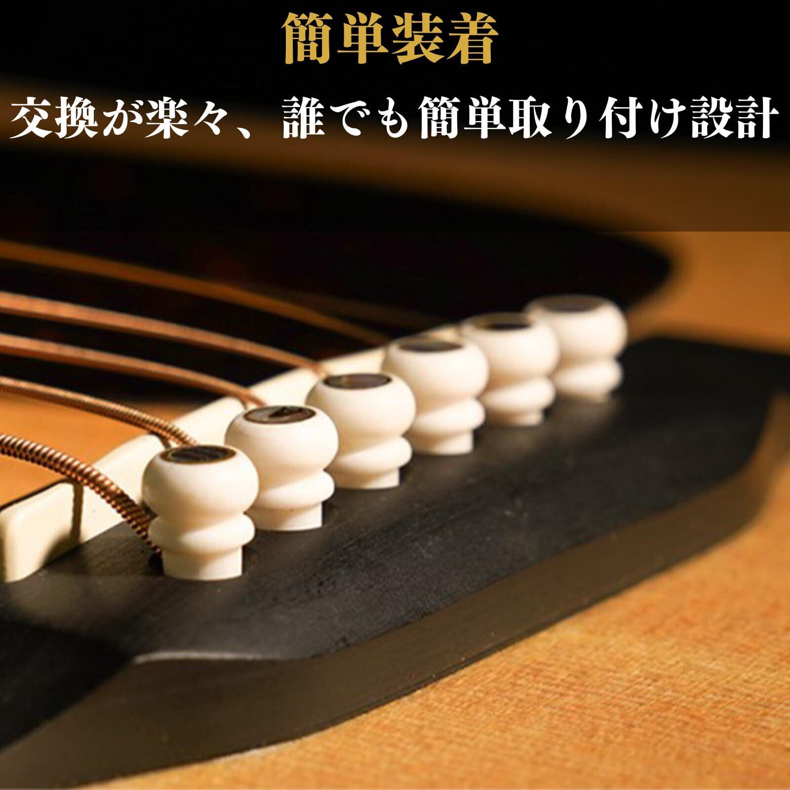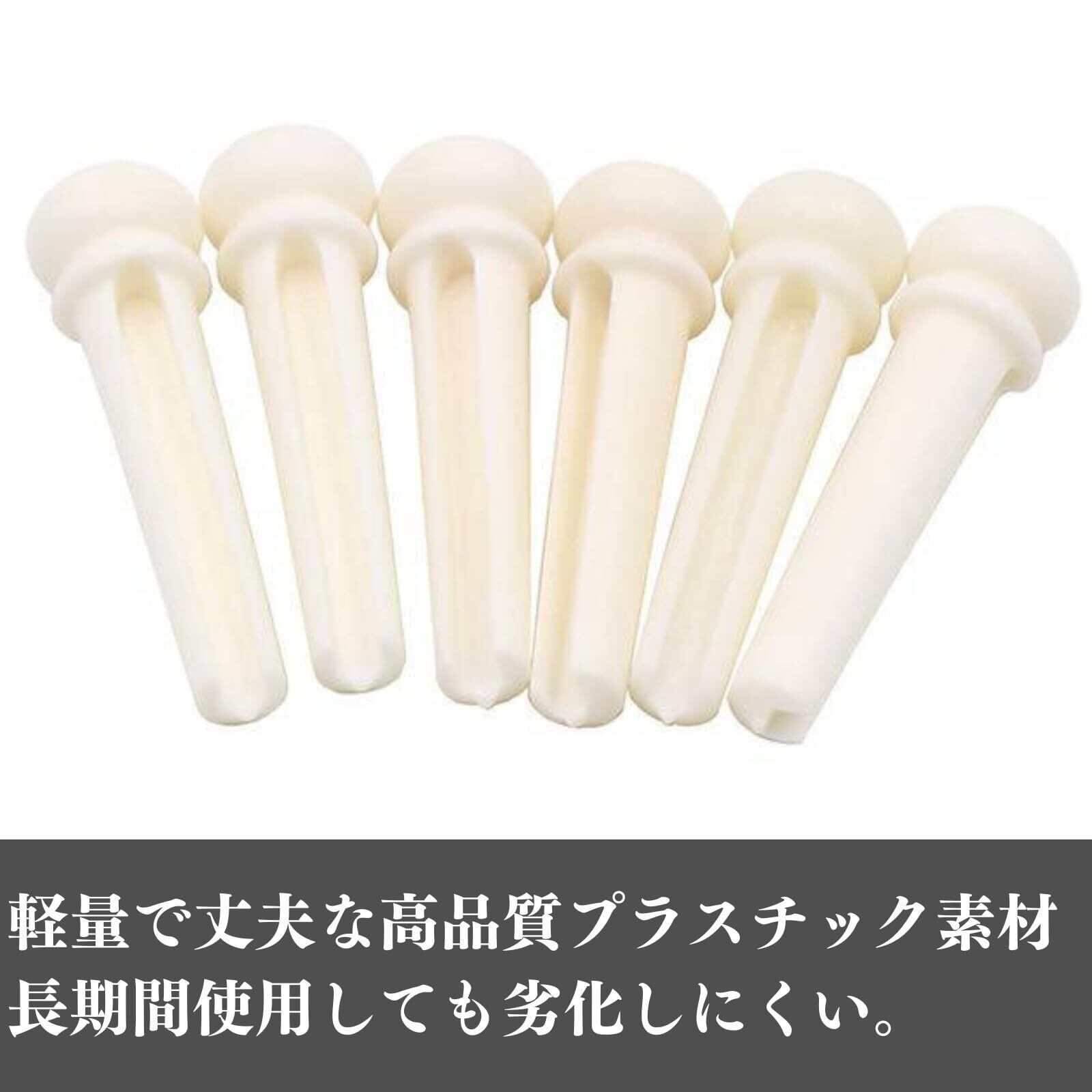 プラスチック製のアコースティックギター用のブリッジピン6個セットです。ギターの演奏を一層楽しくしてくれます。