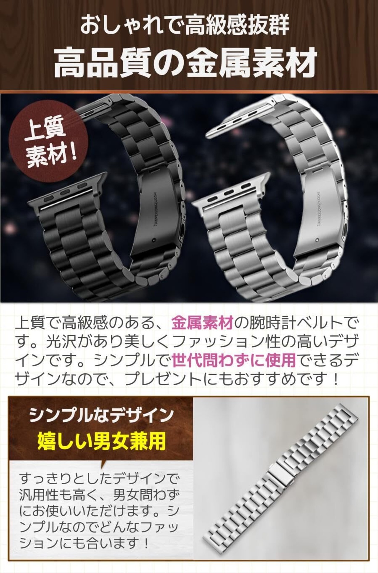【高品質の金属素材】上質で高級感のある、金属素材の腕時計ベルトです。光沢があり美しくファッション性の高いデザインです。シンプルで世代問わずに使用できるデザインなので、プレゼントにもおすすめです!