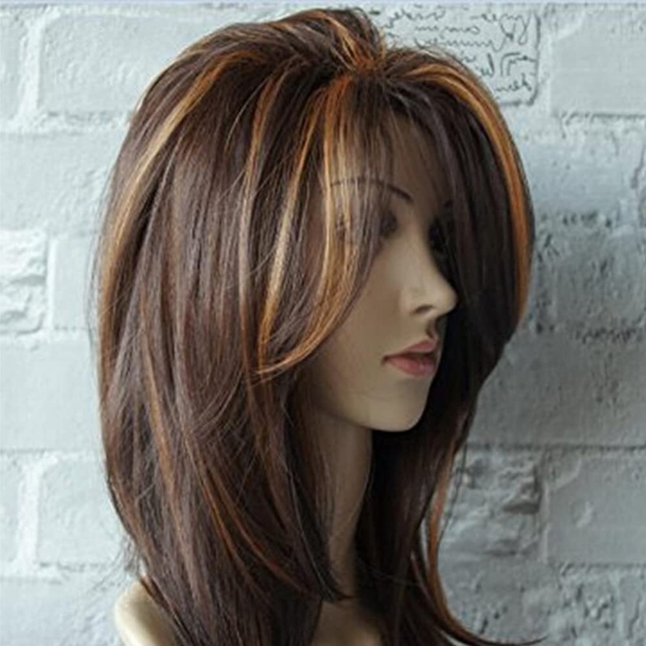 きれいなレイヤードスタイルのウィッグで、明るいトーンのメッシュがハイライトとして入っているので 立体感があり、より自然な印象となっています。