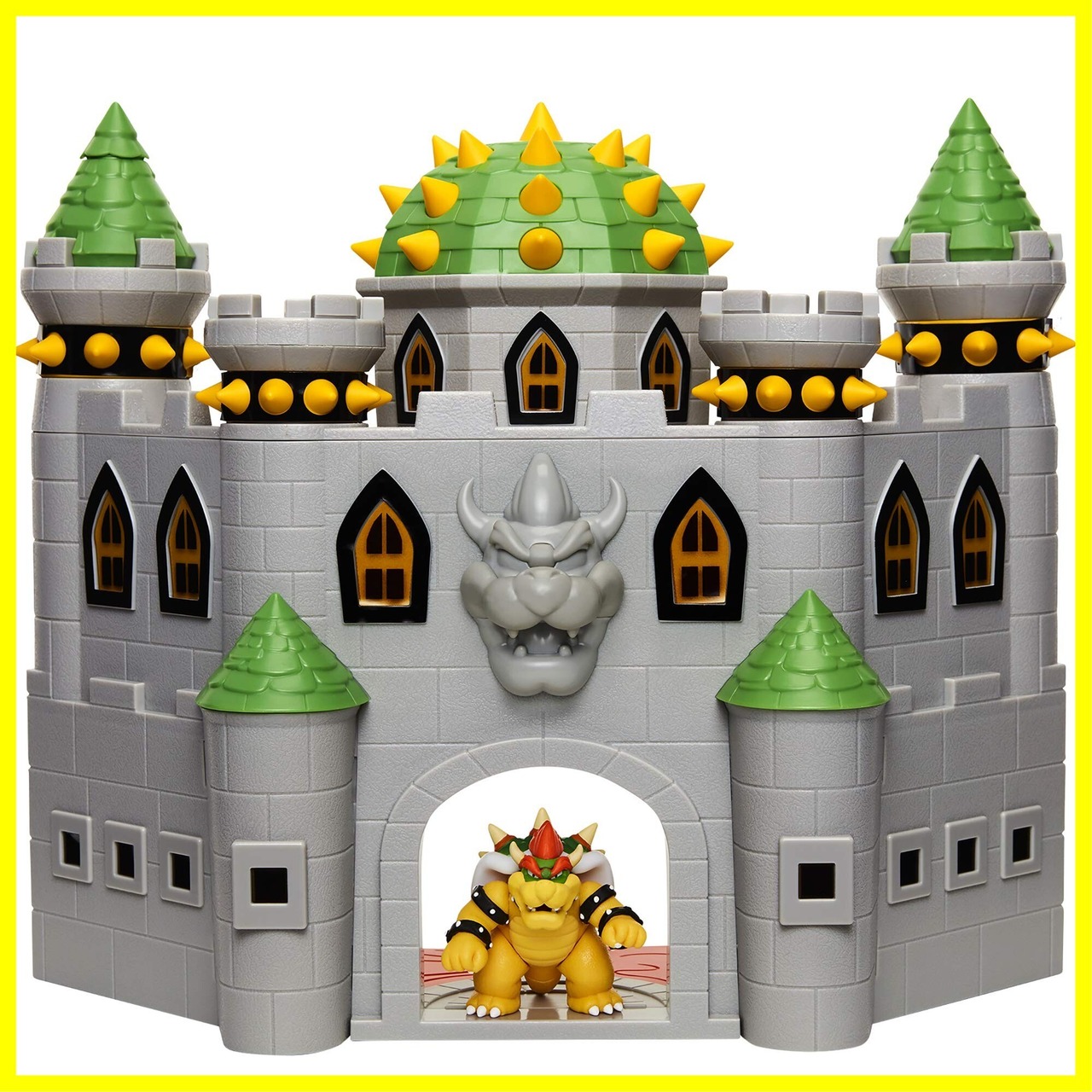 自分だけのシーンを作って楽しもう! 上下に動かせるリフト、仕掛け扉が開くスイッチなど複数のギミックが搭載されています。屋根を押すとサウンド(4種)が鳴って臨場感抜群! クッパのフィギュア付きです。※単四電池2本使用(別売)