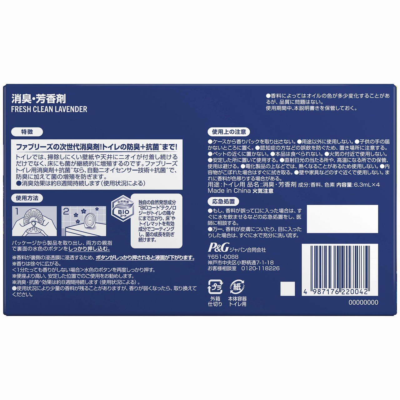 ファブリーズ 消臭芳香剤 消臭+抗菌 トイレ用 フレッシュ・クリーン・ラベンダー 6.3mLx4個