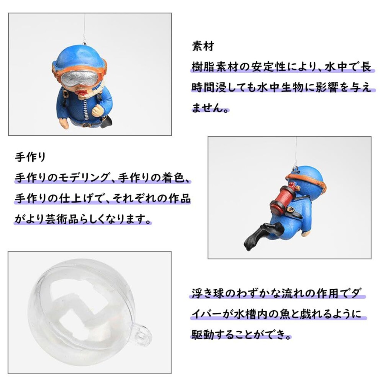 サムコス アクアリウム 水槽 光る 6点セット ダイバー 装飾 浮遊球付き 魚のおもちゃ 雰囲気作り人形 樹脂 水槽用アクセサリー (潜水士の装飾)