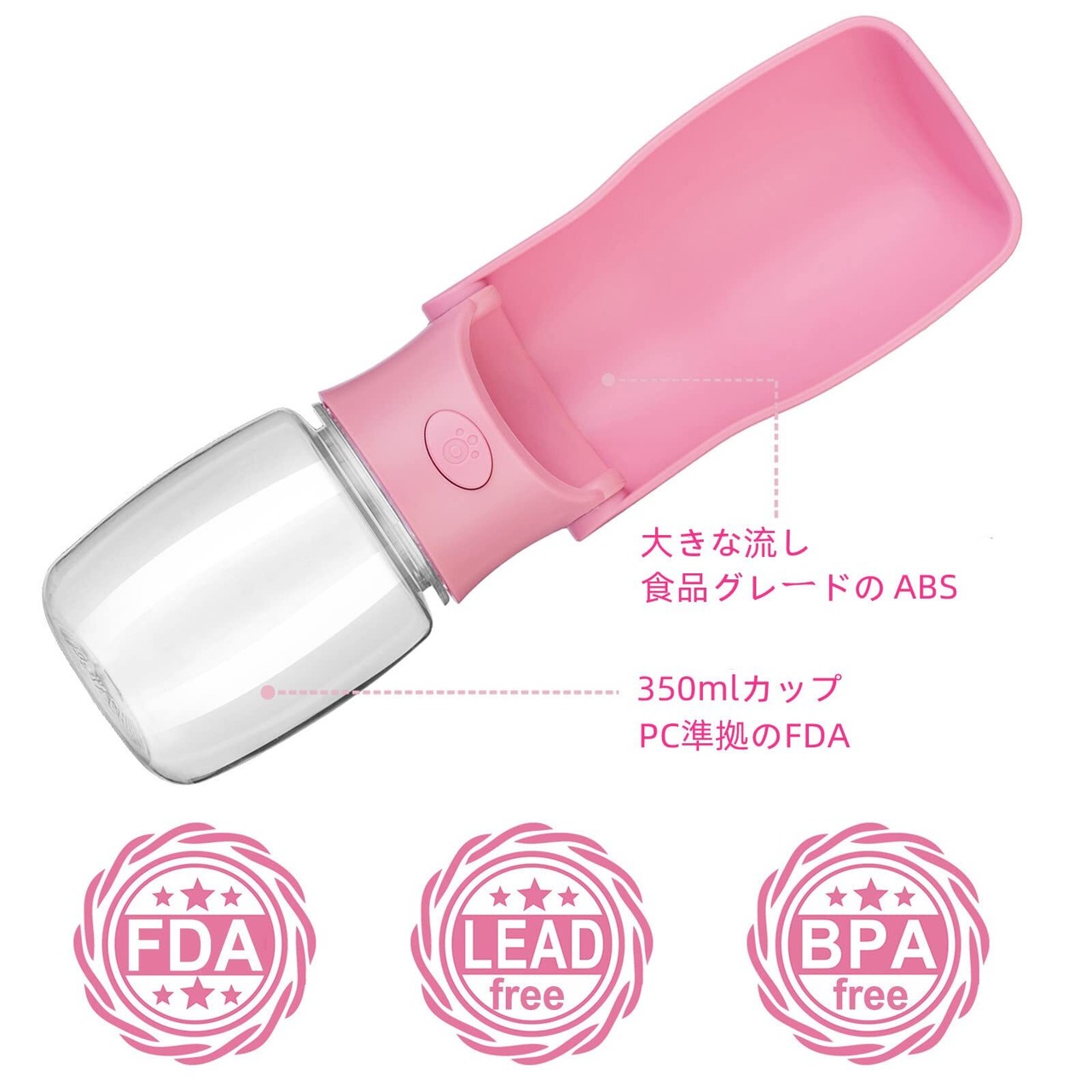 ペットウォーターボトル ポータブル犬 水筒 犬 散歩 水 折りたたみ式 犬 水飲み 散歩 漏れ防止水分補給が簡単屋外 ペット用品水飲みボトル350ml ピンク ペットの水筒…