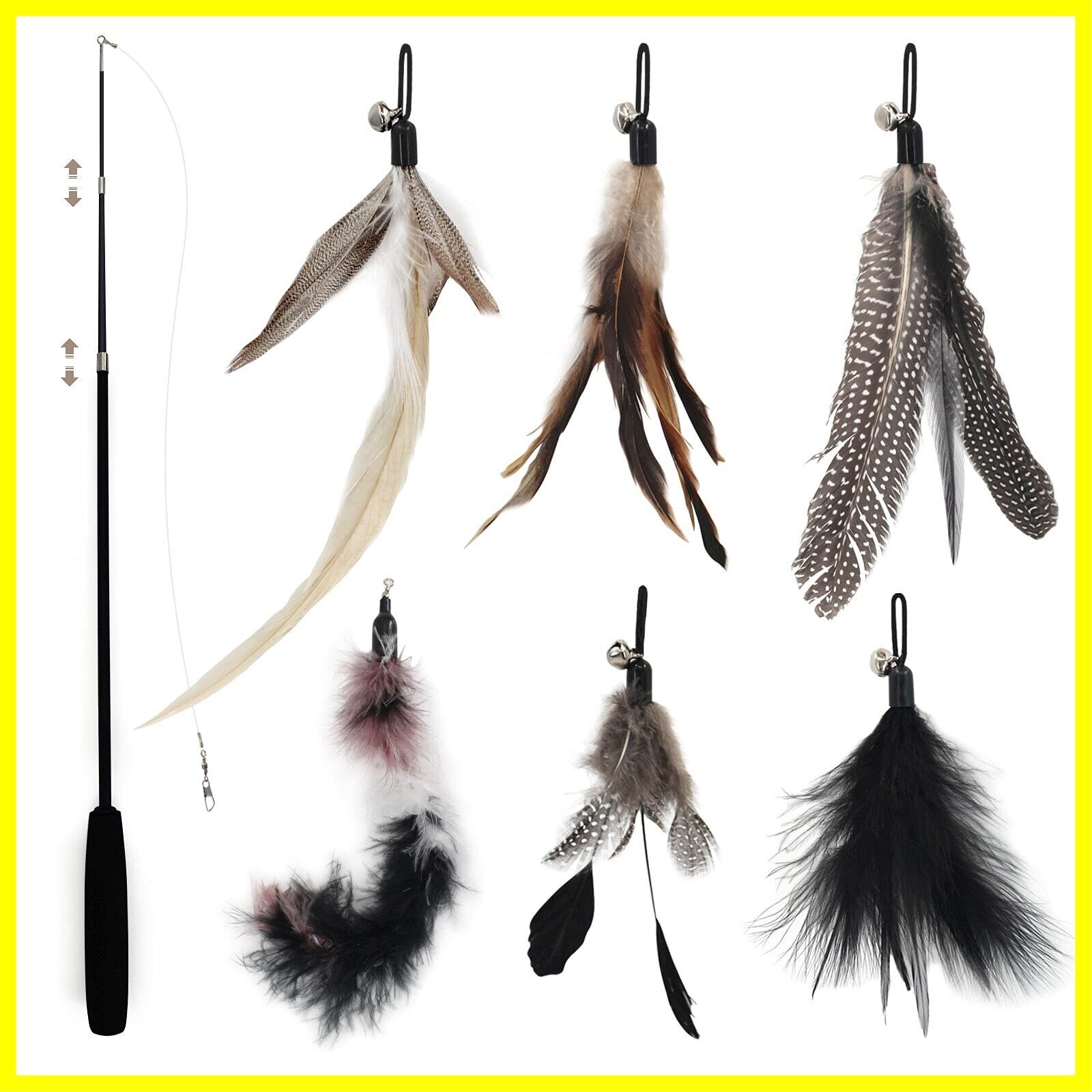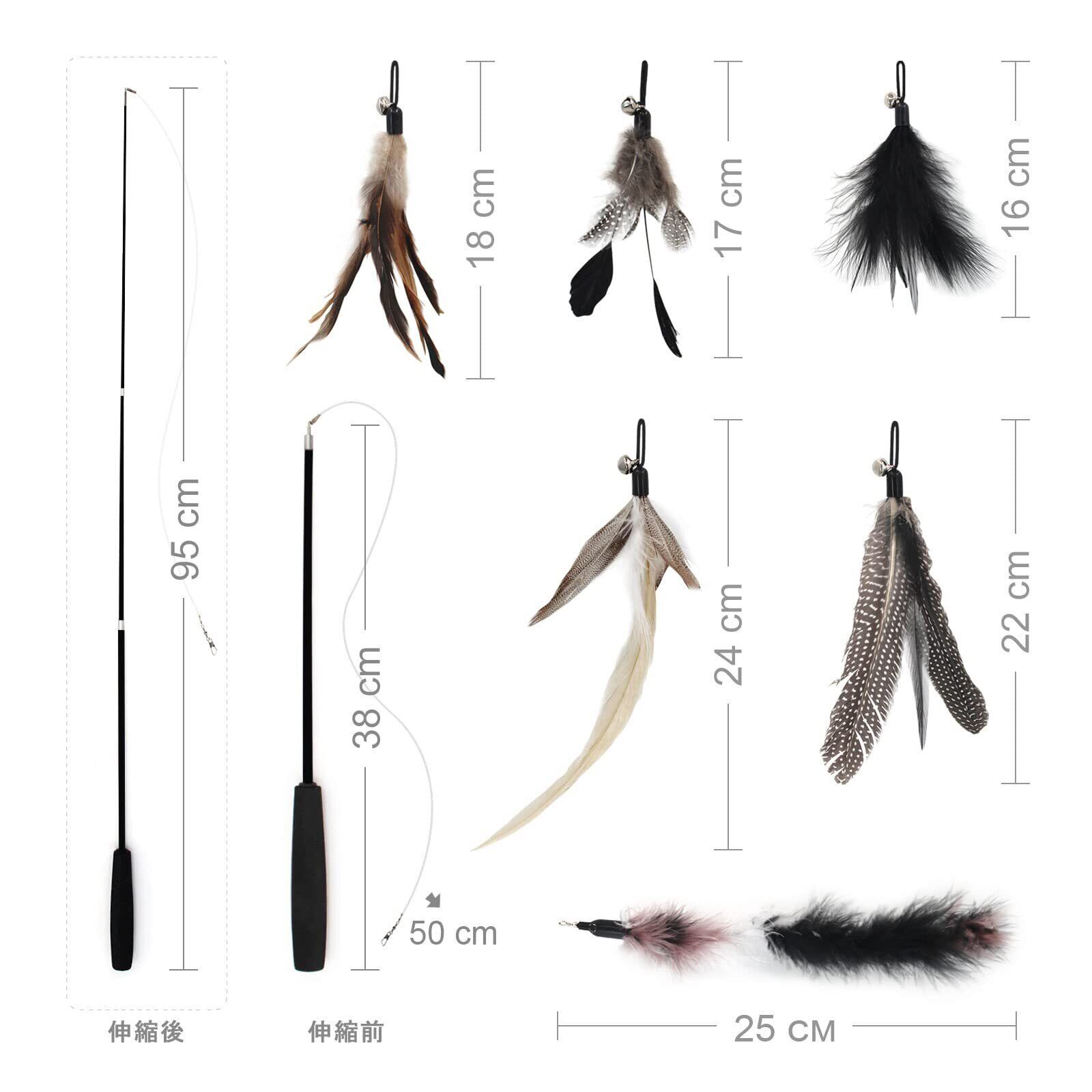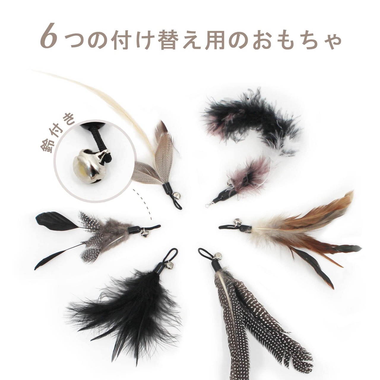 SONGWAY ねこじゃらし 猫おもちゃ 猫じゃらし 交換しやすい 交換用おもちゃ 羽のおもちゃ 運動不足とストレス解消 じゃれ猫 ペットのおもちゃ 鈴付き 7セット ブラック