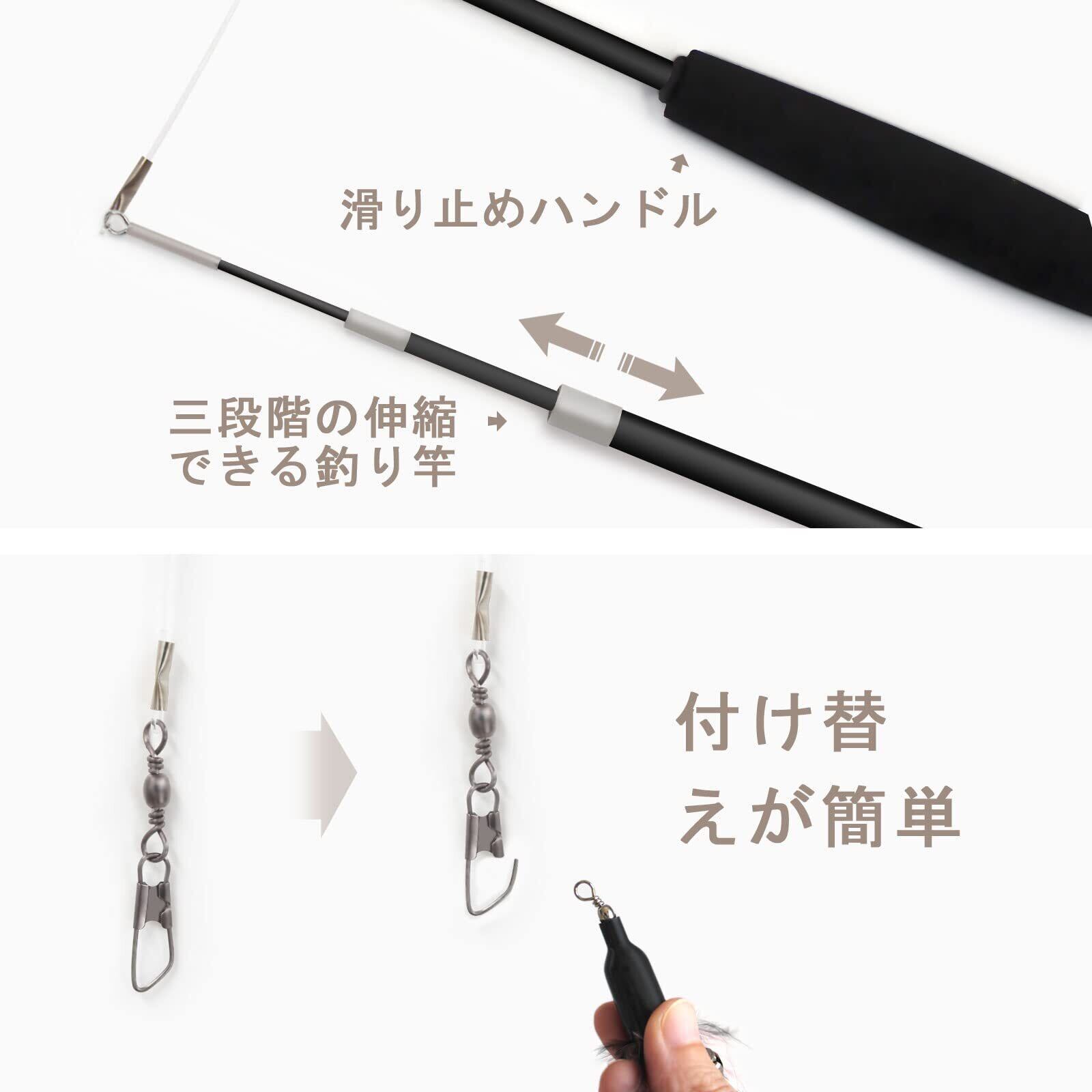伸縮可能な釣り竿:このじゃらしは竿を伸縮させることができます。そのため部屋のサイズや飼っている猫に合わせて竿の長さを調整することが可能です。