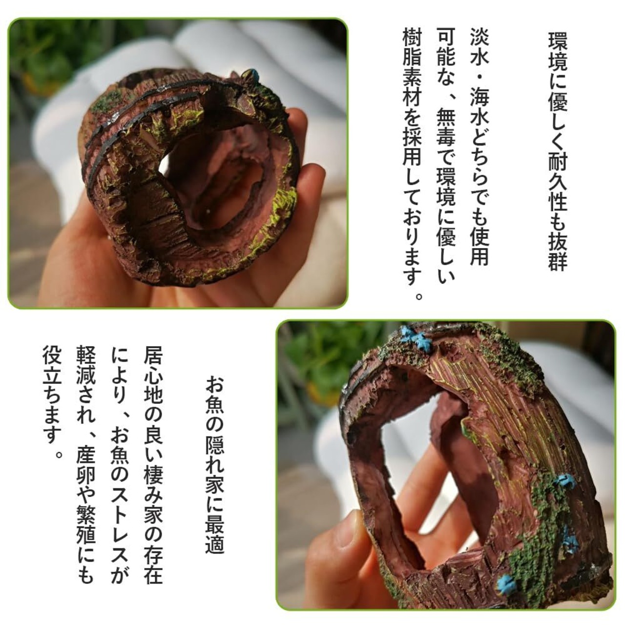 DFsucces アクアリウム 水槽用 オブジェ 樽 隠れ家 水槽 オーナメント 水槽内装 アクアリウム 魚のおもちゃ DIY 雰囲気作り 樹脂 安全性 耐久性