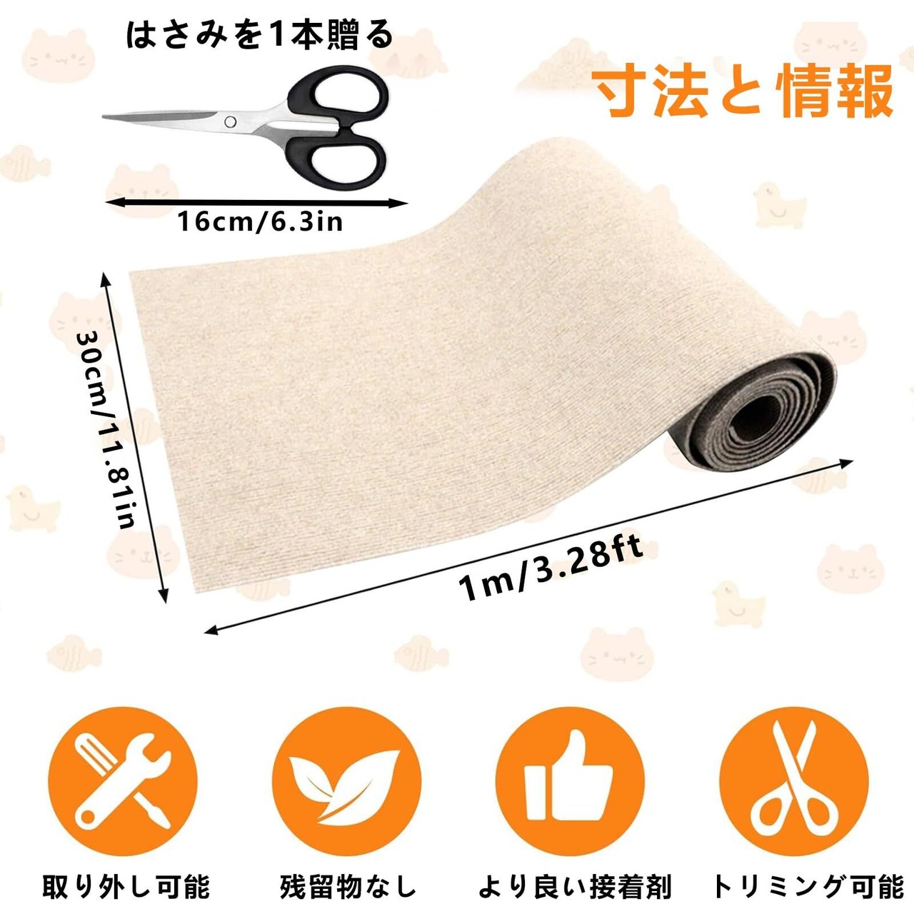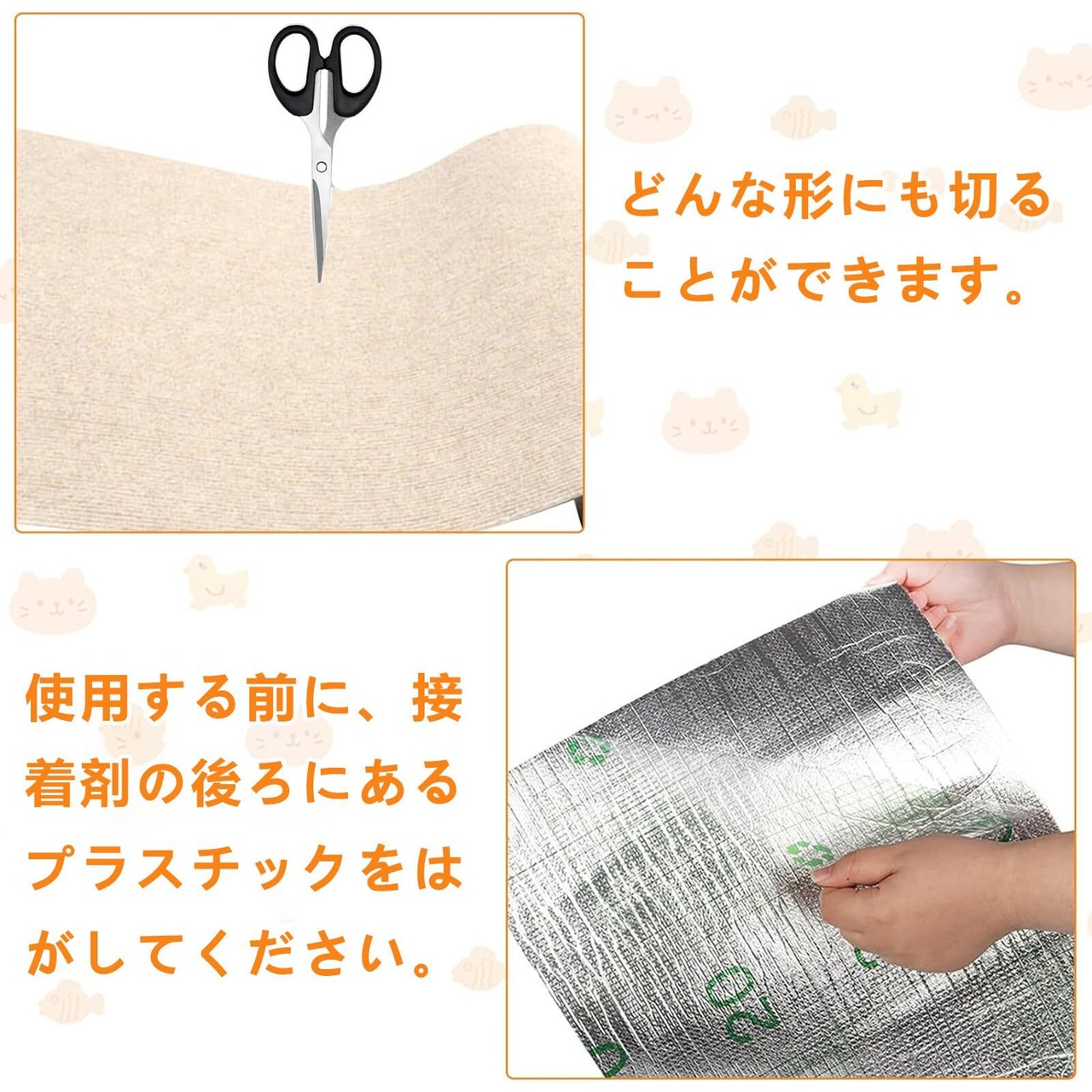 【簡単インストール】猫の爪とぎマットは、自己粘着性の背面を備えており、その取り付けは非常に簡単で便利です。背面の保護フィルムを剥がし、床や家具の表面に貼り付けるだけで、素早く設置できます。この簡単な取り付けは、飼い主にとって手間がかからず、すぐに猫が利用できる環境を提供します。