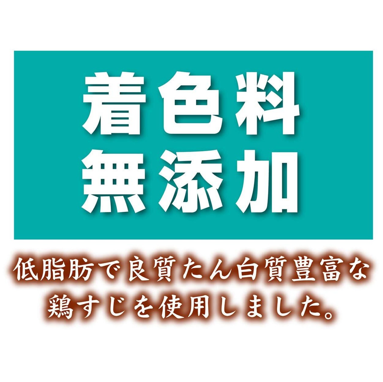 低脂肪でコラーゲン・良質たん白質豊富な鶏すじを使用。素材本来の旨味を凝縮し、美味しく仕上げました。やわらかな噛みごこちで小型犬・シニア犬にも与えやすい。着色料無添加。